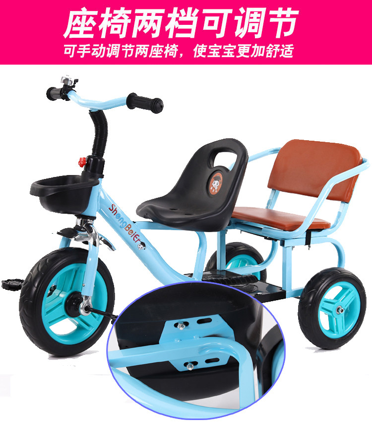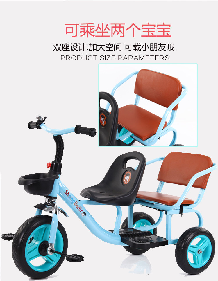 Детский велосипед тандем, трехколесный велосипед, детская игрушка для близнецов с педалями подходит для мужчин и женщин, 2-6 лет