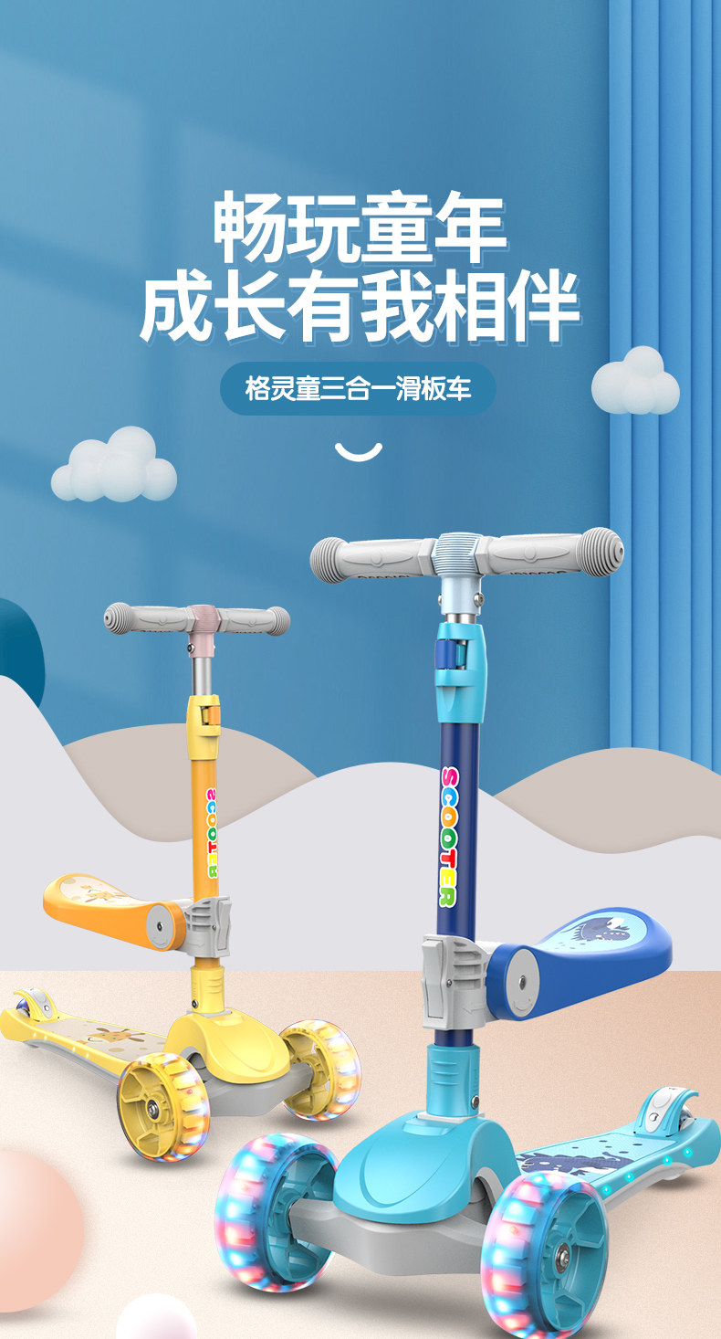 格灵童 Детский легкий музыкальный самокат, складная детская игрушка, 2 в 1