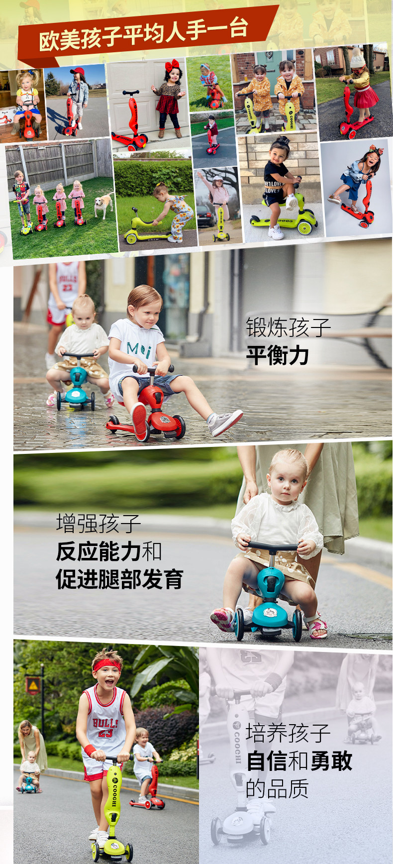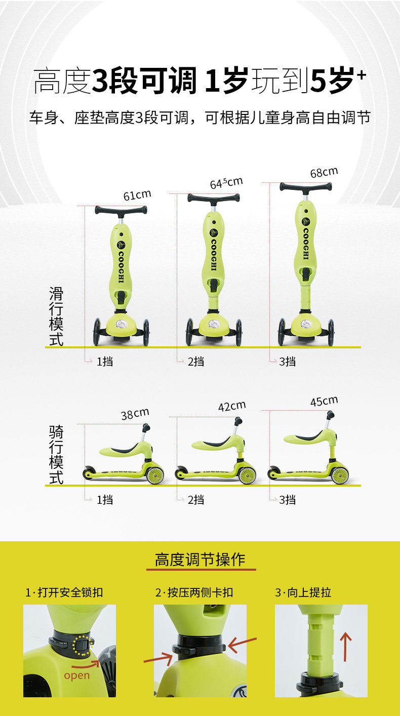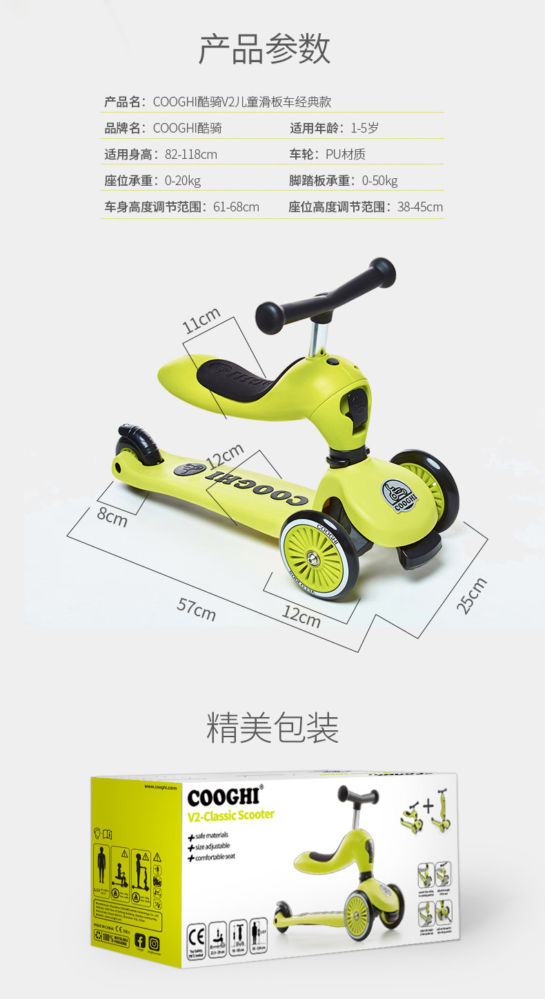 Cooghi, детский самокат с сидением, 1-5 лет, 2 лет, учит балансу