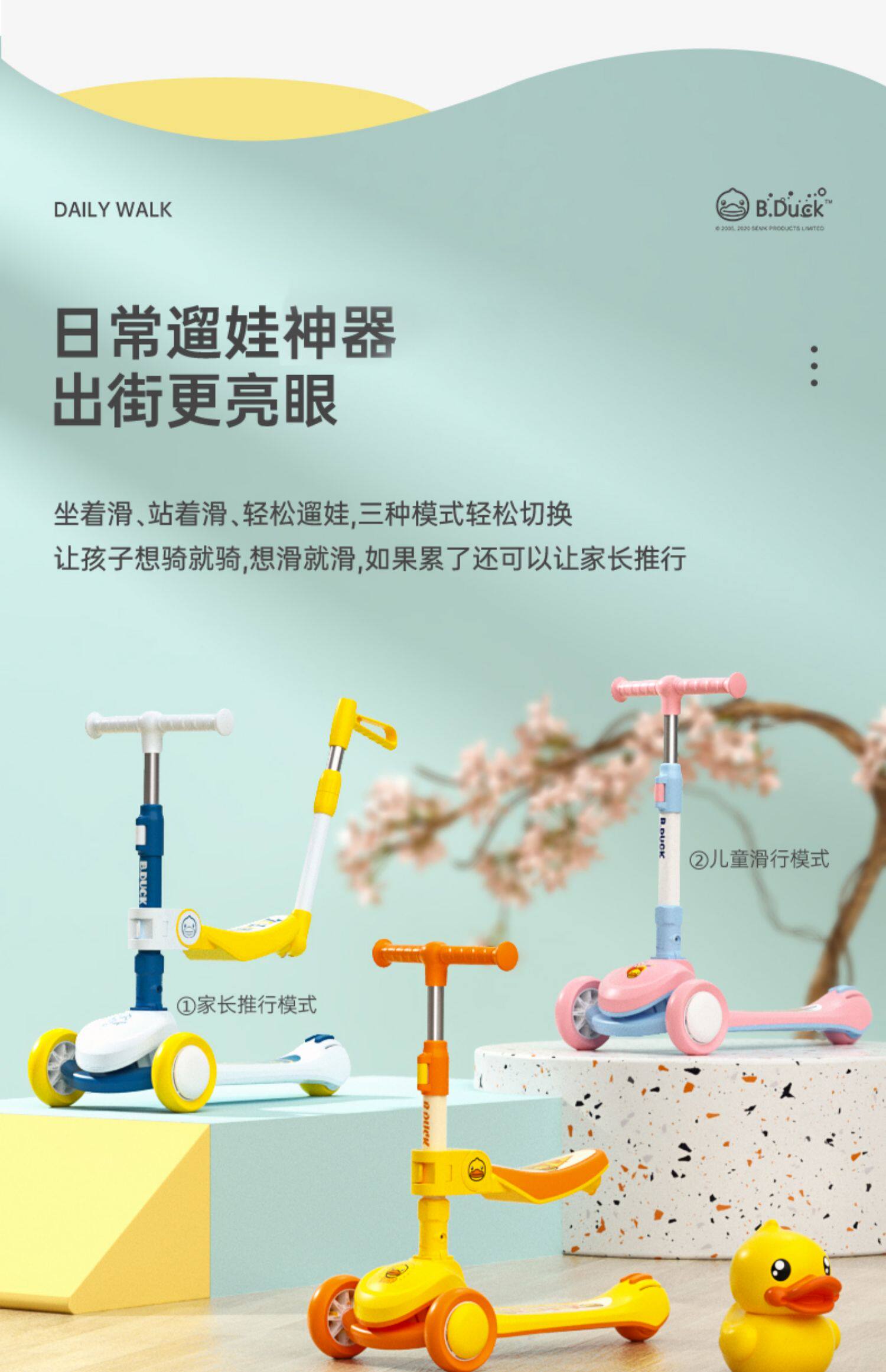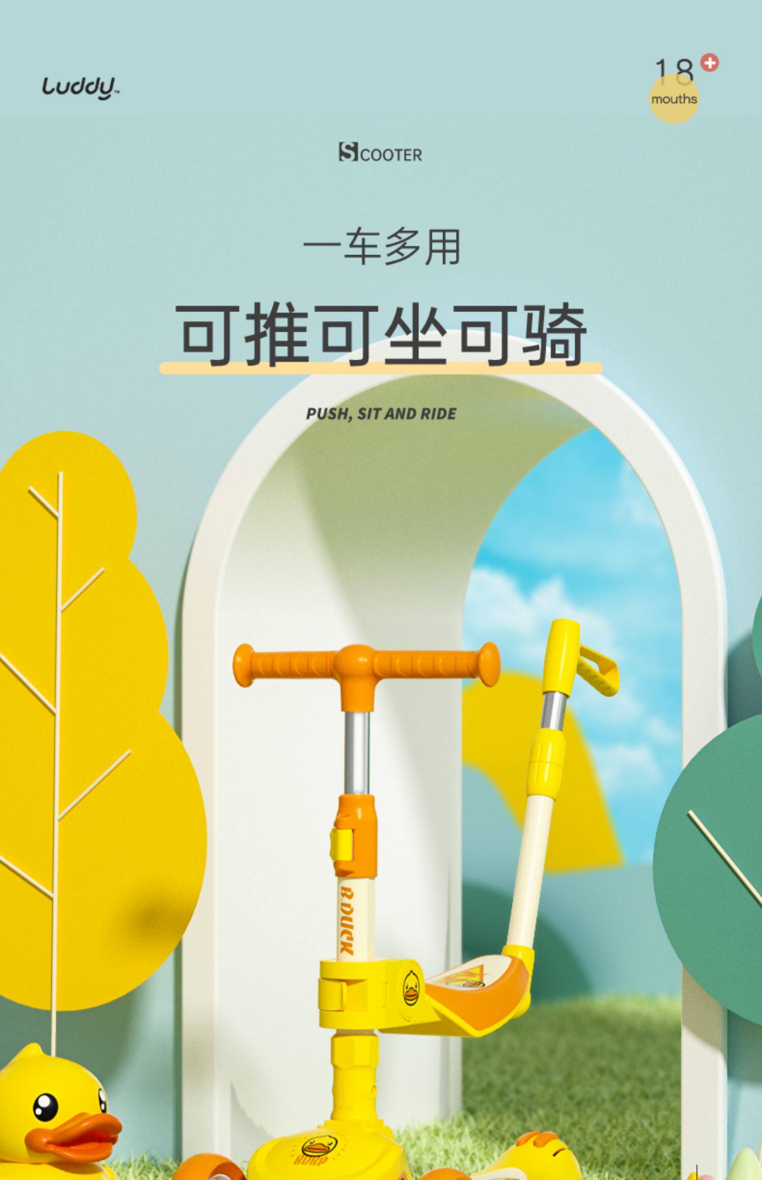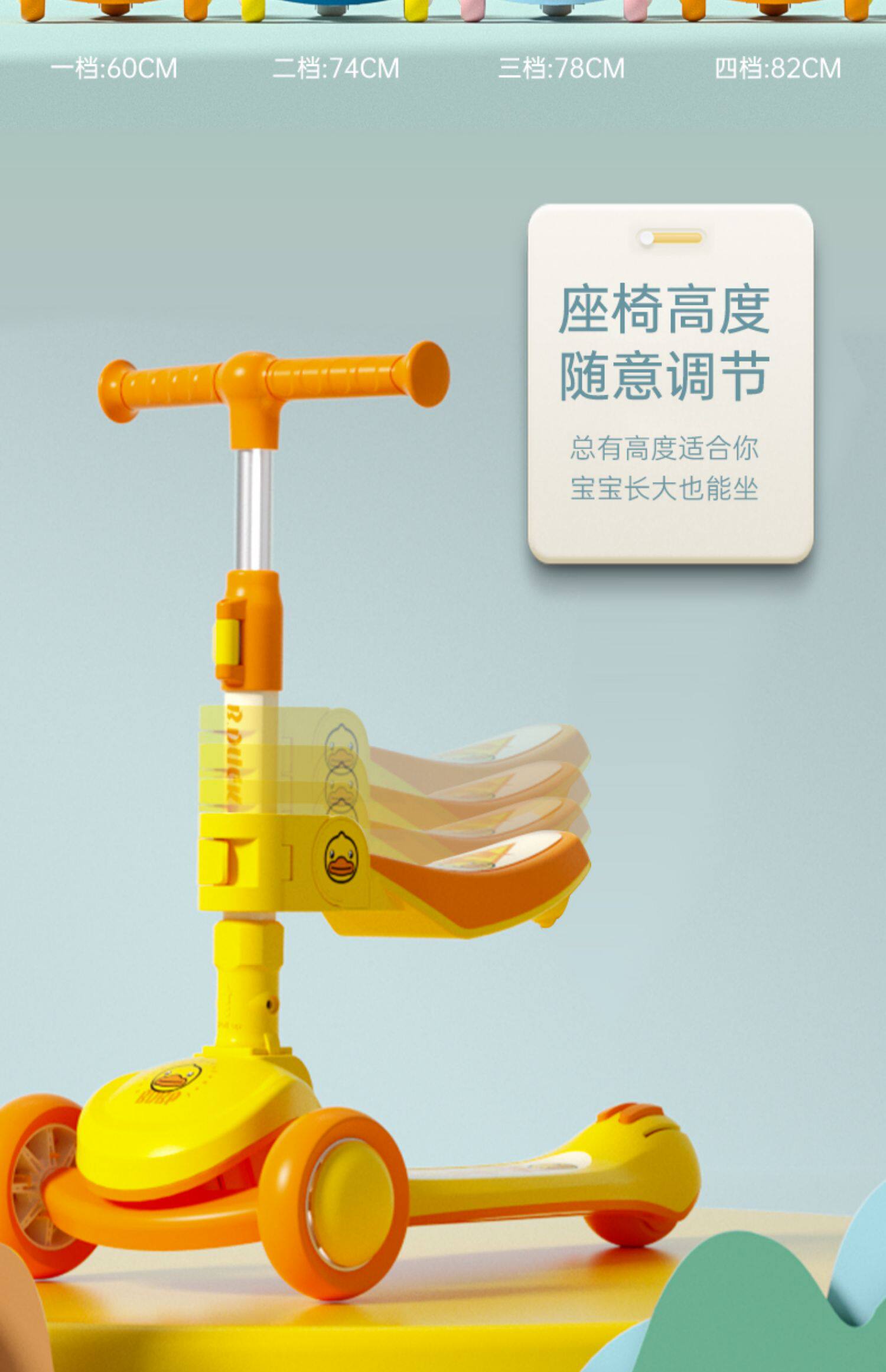 B.Duck, детский самокат подходит для мужчин и женщин для девочек с сидением, 1-3 лет, «три в одном»