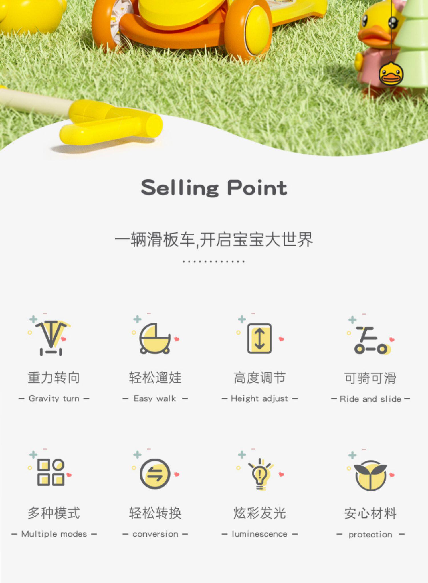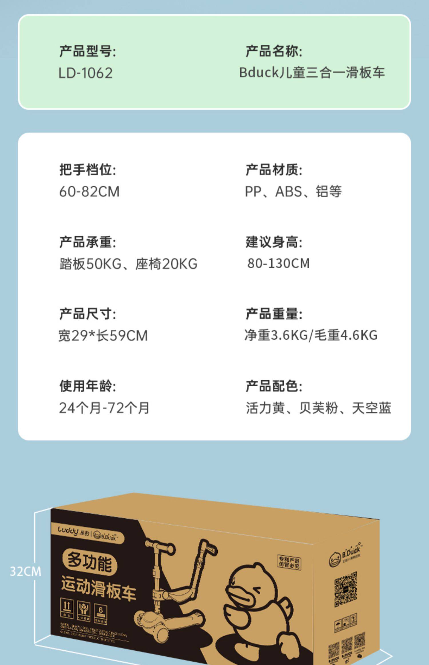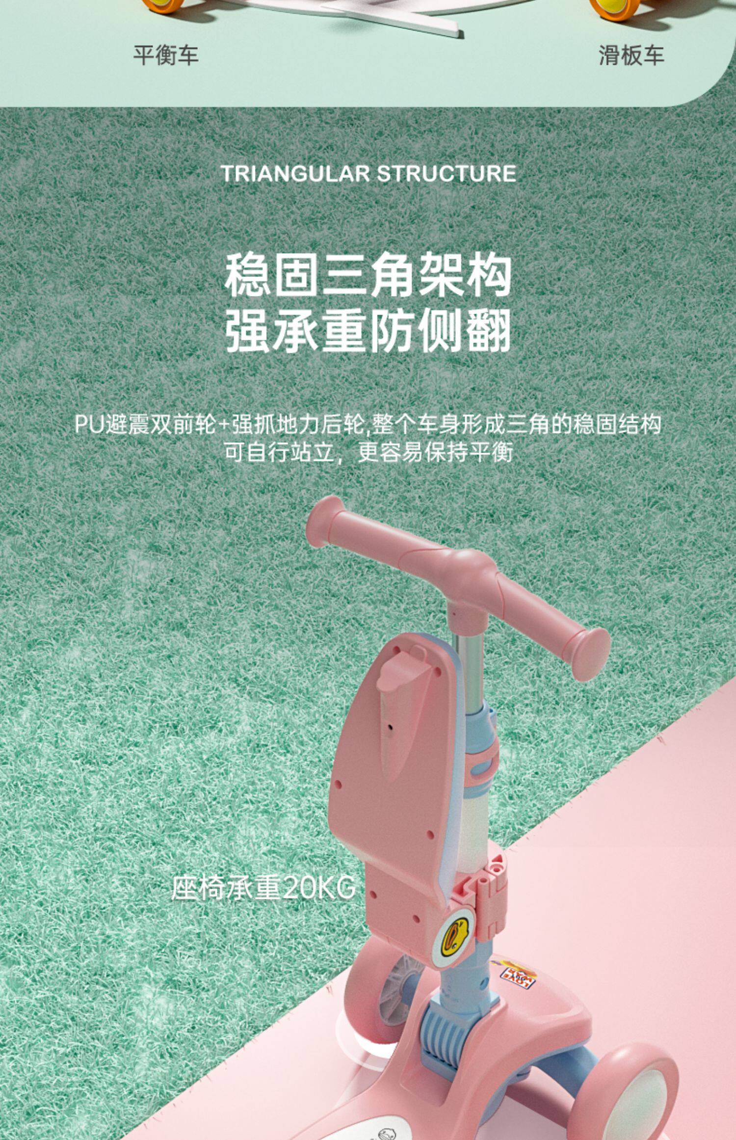B.Duck, детский самокат подходит для мужчин и женщин для девочек с сидением, 1-3 лет, «три в одном»