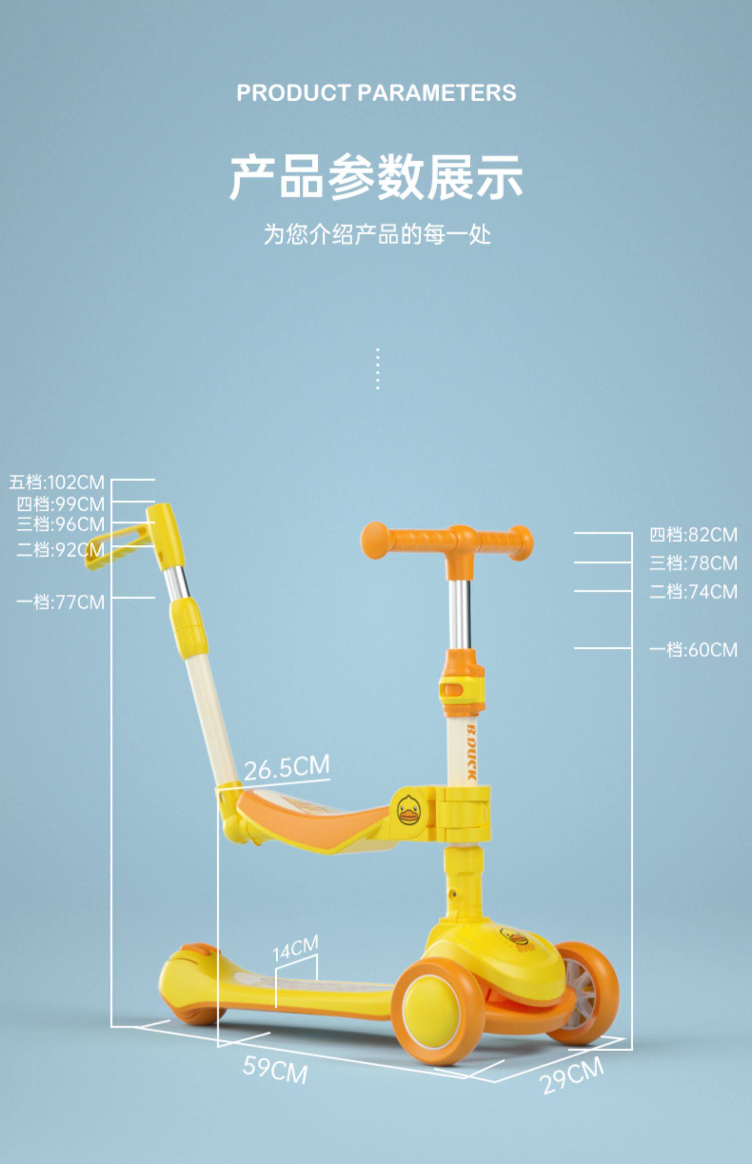 - B.Duck, складное кресло, крутящийся ростомер, 2 в 1, 77-125см