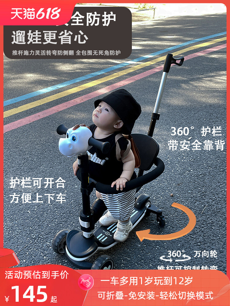逗尔 Детский самокат с сидением подходит для мужчин и женщин для раннего возраста, 6 лет