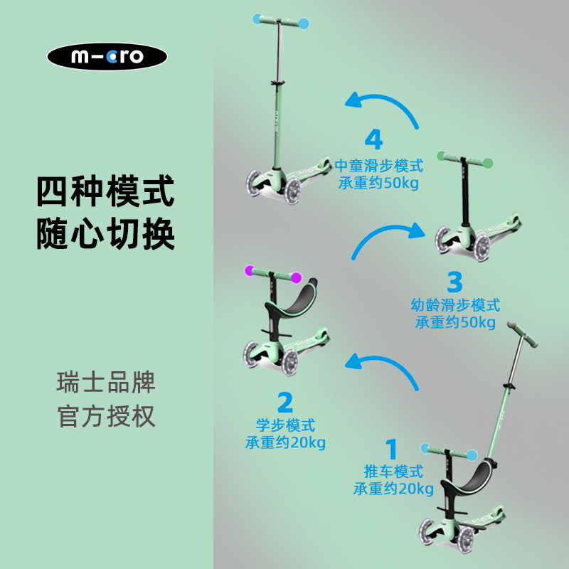 Micro, светящийся детский самокат, коляска с сидением, 1-6 лет