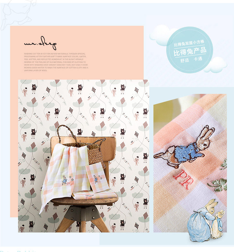 黛富妮 Мультяшные двусторонние влажные салфетки для умывания, дышащий хлопковый шарф, хлопковое банное полотенце