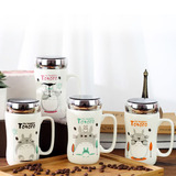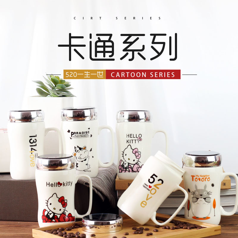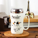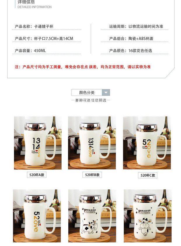 Мультяшная крышка для влюбленных со стаканом, вместительная и большая чайная чашка, зеркальный эффект, делается под заказ, с печатью вашего логотипа