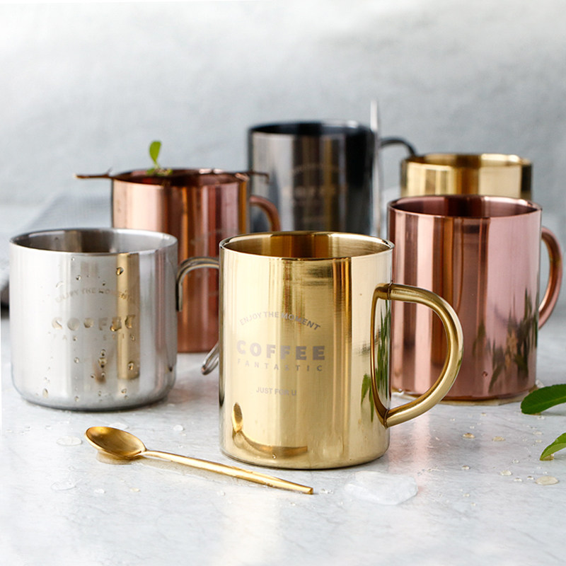 Северная ретро -медная кофейная чашка 304 из нержавеющей стали двойной слой анти -хотмарной чашки водяной чашки творческий молочный завтрак чашка для завтрака