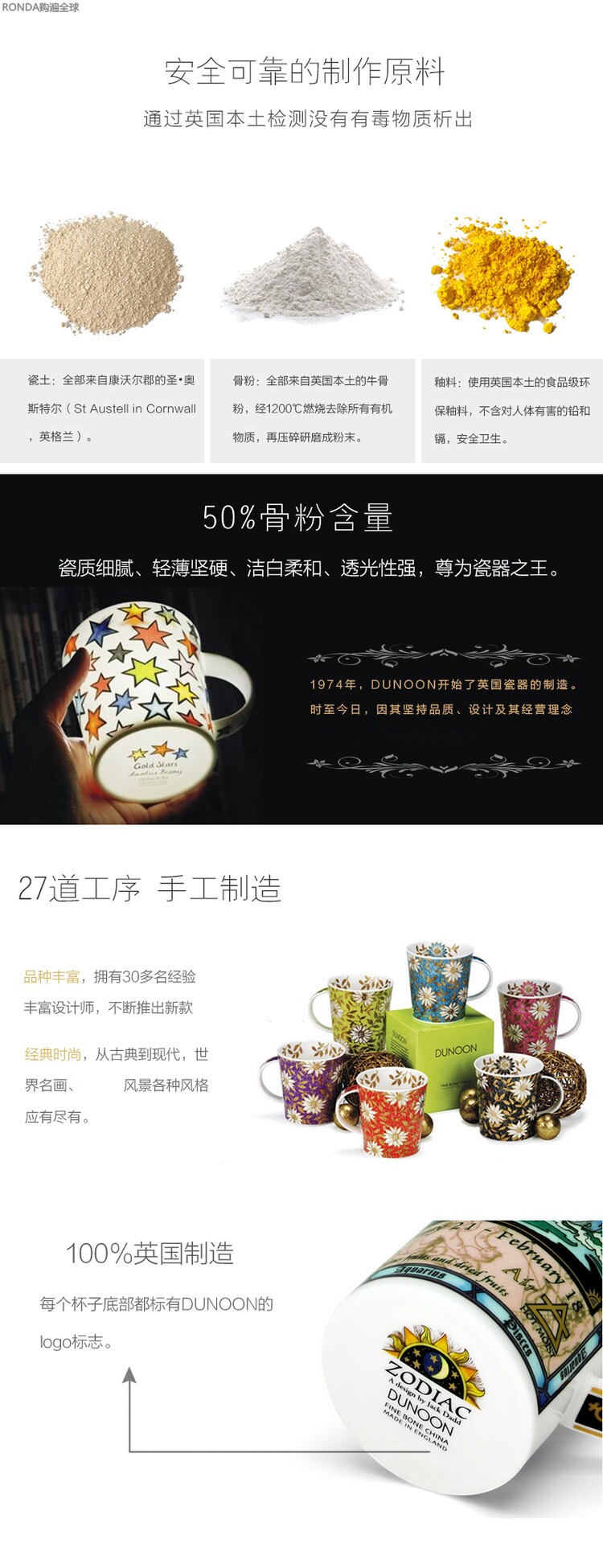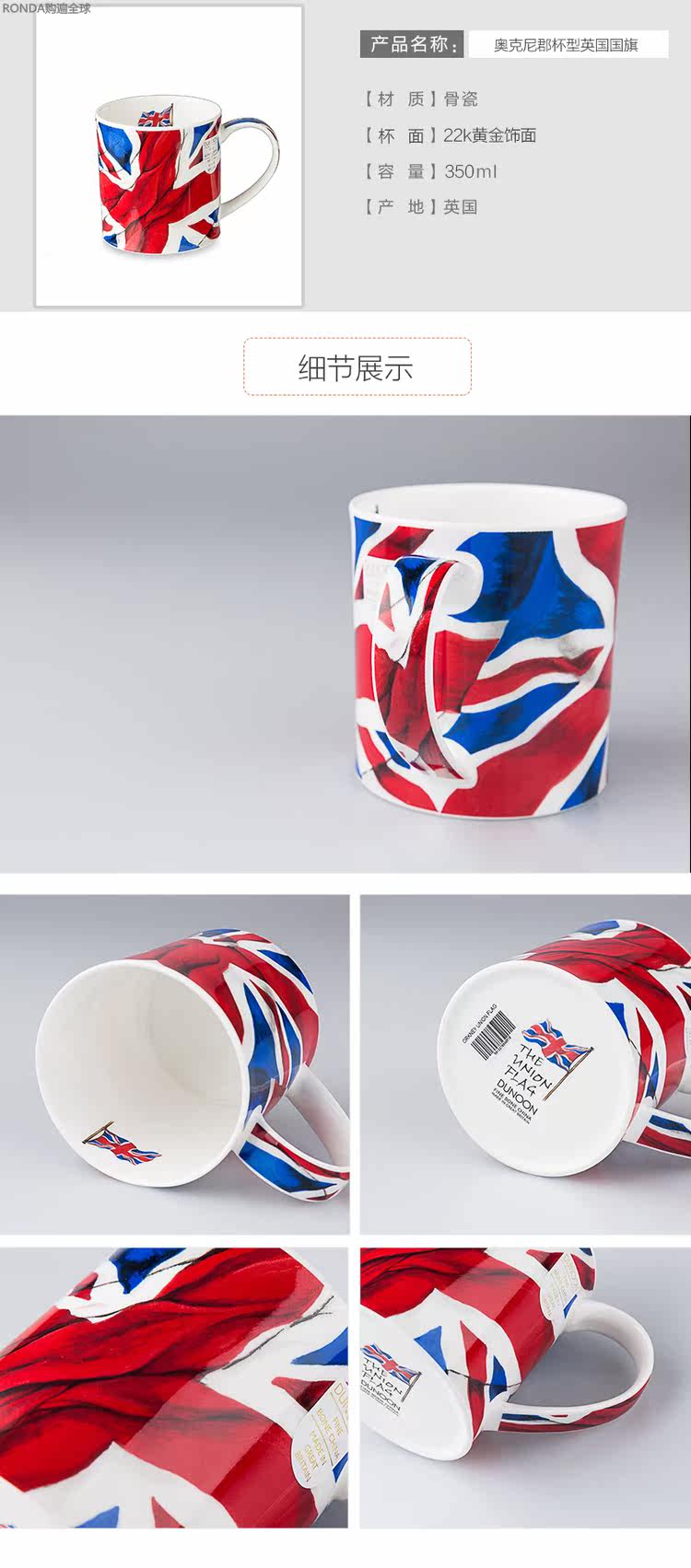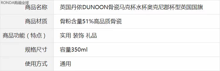 Британский дунун 50%костяной порошок костяной костяной фарфоровой фарфоровой кубок водяной чашки Окни Кубок округа Британский флаг