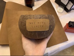 Чашка из скорлупы кокосового ореха имеет диаметр от 11 до 12 см, глубину около 10 см, общую высоту около 10 см и емкость от 300 до 400 мл.