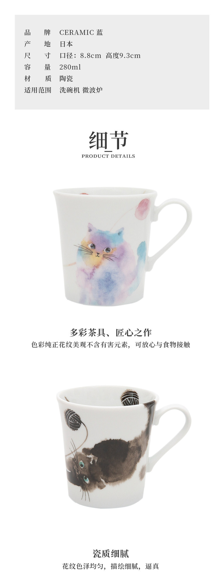 Японская импортная керамическая чайная чашка, 280 мл