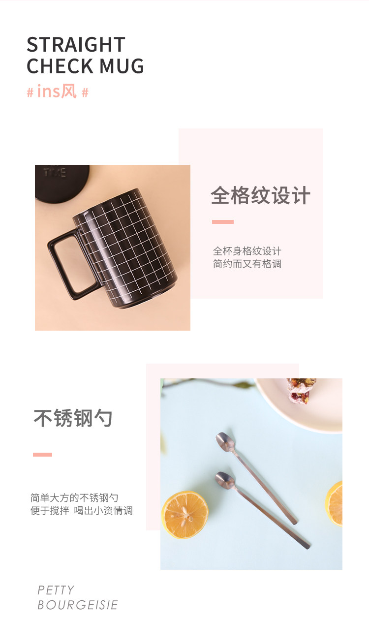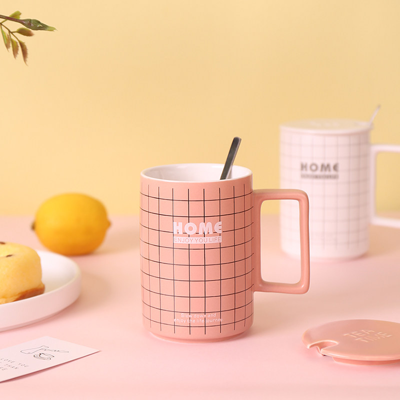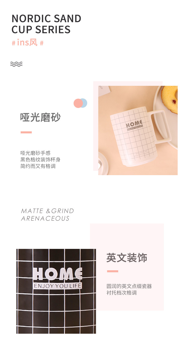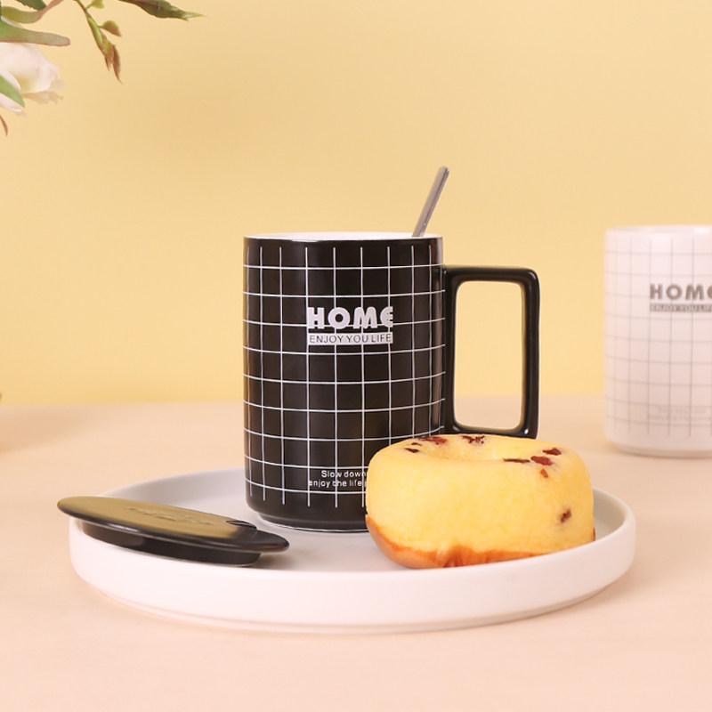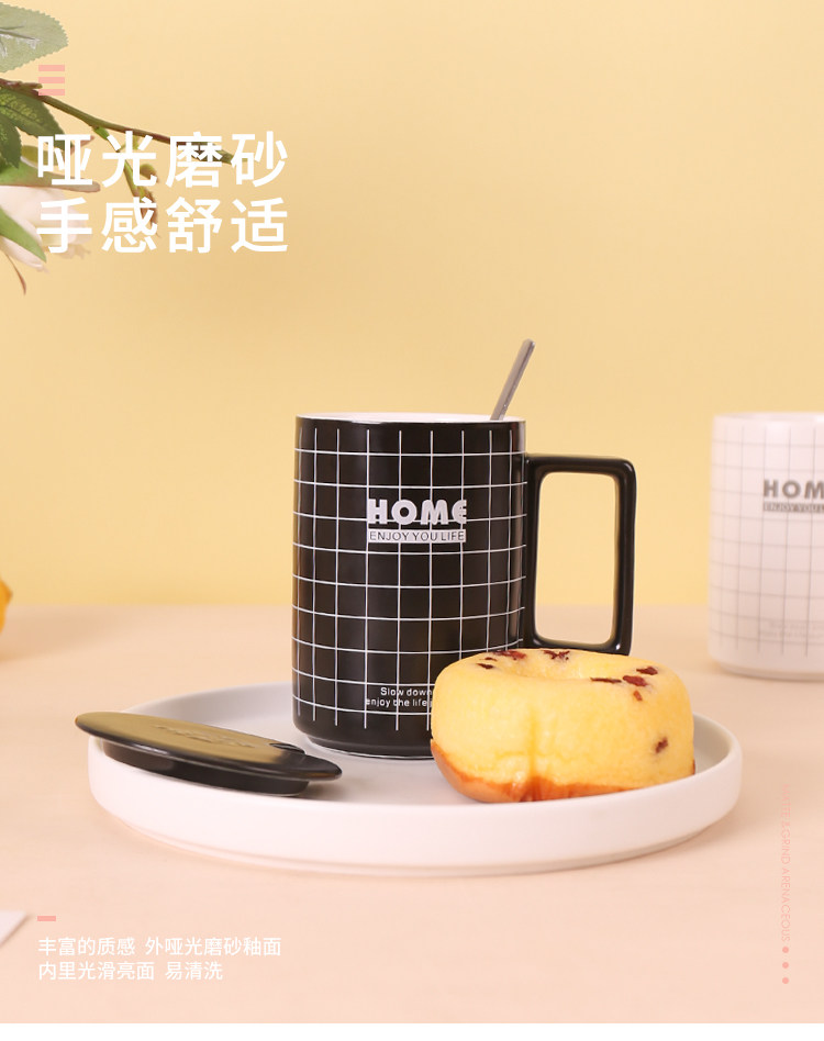 Ins nordic creative articed black mark cup с ложкой простой модной матовой кофейной чашки Light Luxury Cup