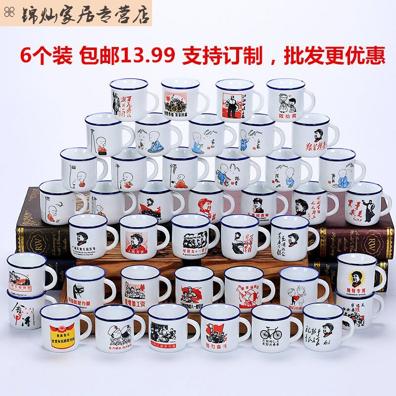 Танг фарфоровый рот чашка цитаты эмаль Марк Кубок 6 Черная винная чашка на заказ мини -керамика чайная чашка чай