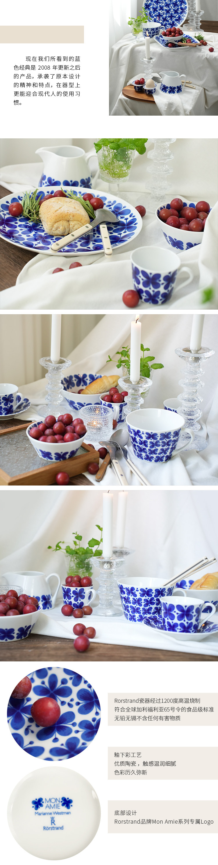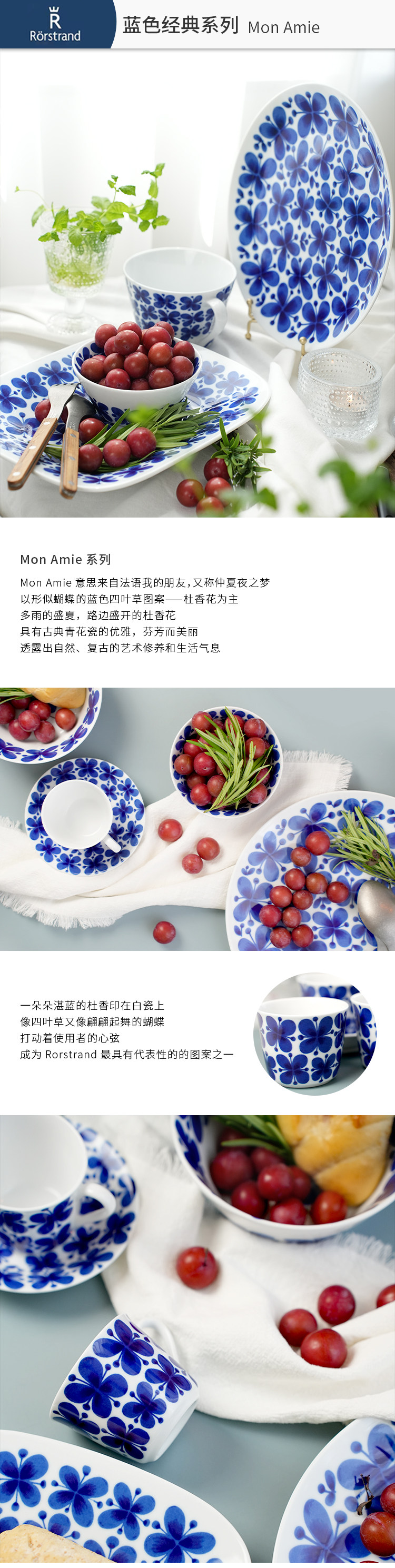 Шведский Рордранд Росленд Блю Классический Мон -Эми Глэйзу Голубой бабочка цветочная тарелка ретро свадебный подарок