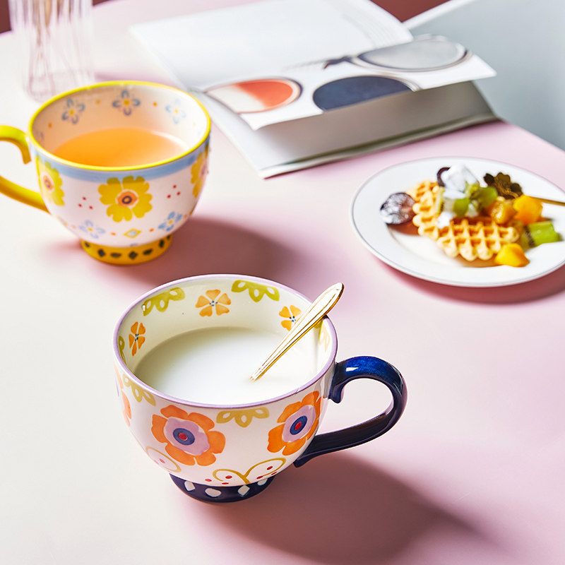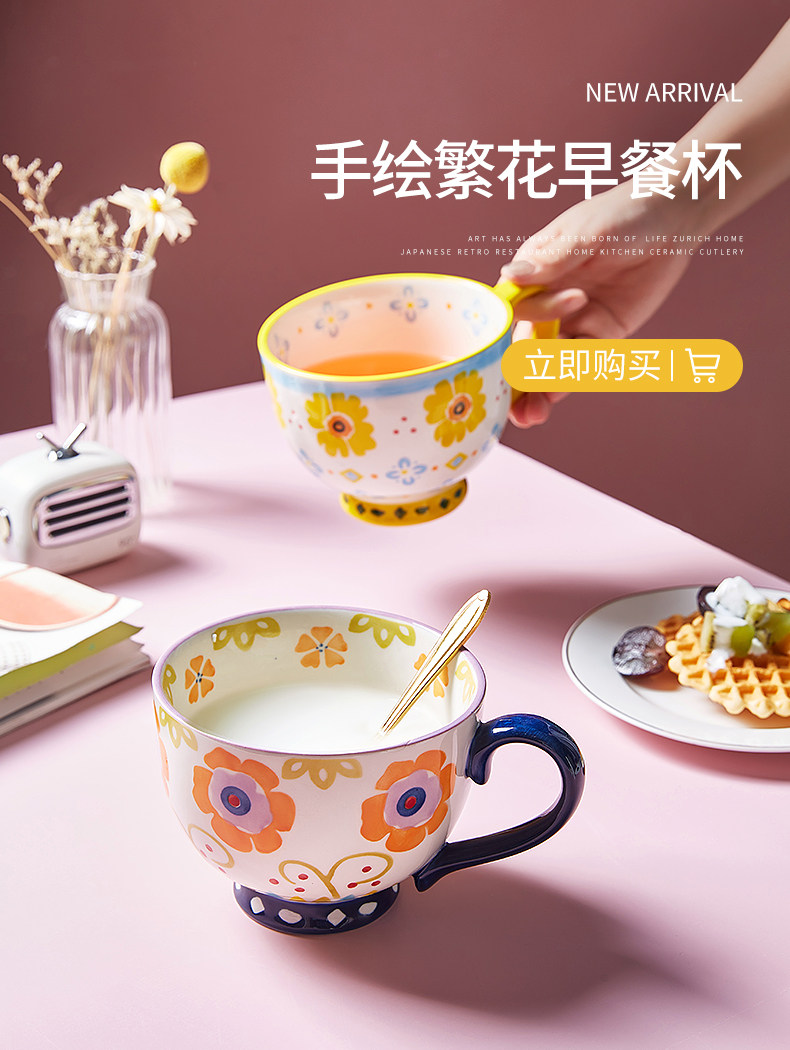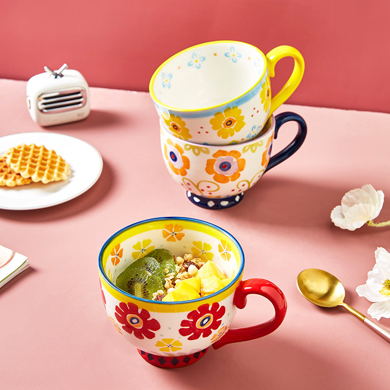 Imhouse Retro Mark Cup Home маленькая свежая керамическая чашка утолщен и анти -хот может быть микроволновой овсяной чашкой для овсяной муки
