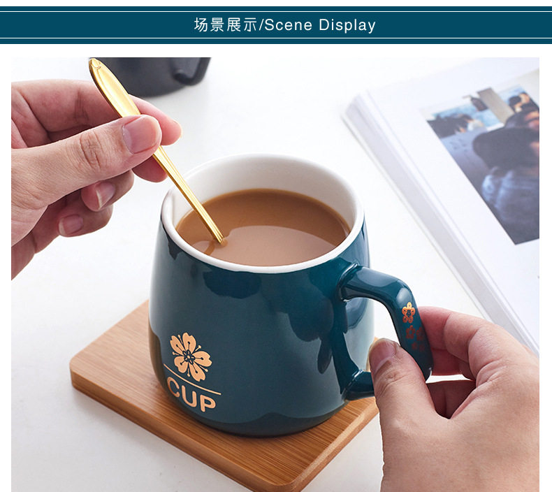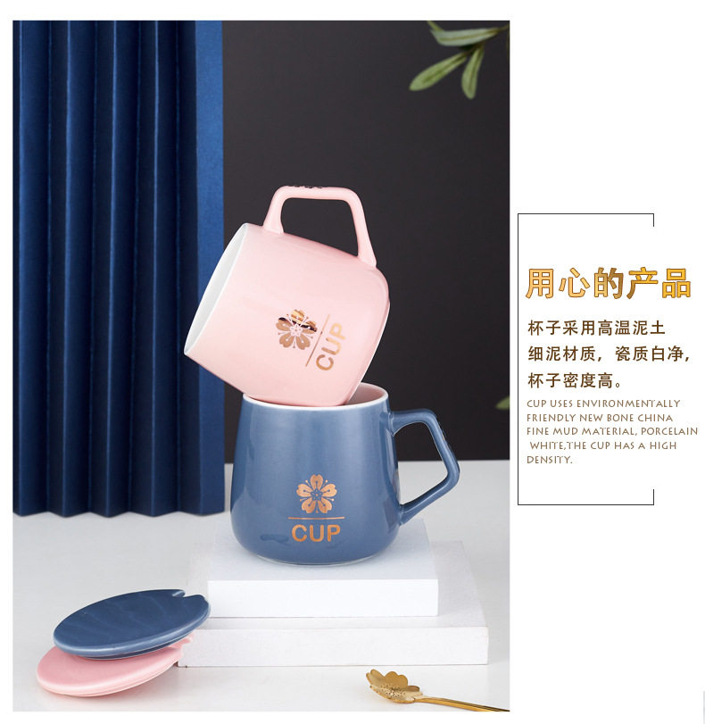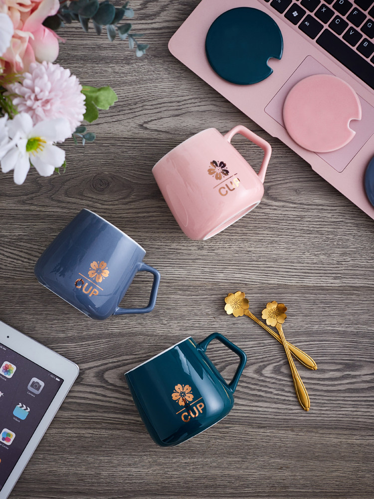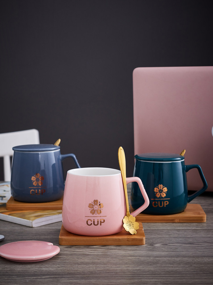 Керамическая чашка для кофе в скандинавском стиле, креативная личность, модная кружка для пар с крышкой, ложка, большая вместимость, милая девушка