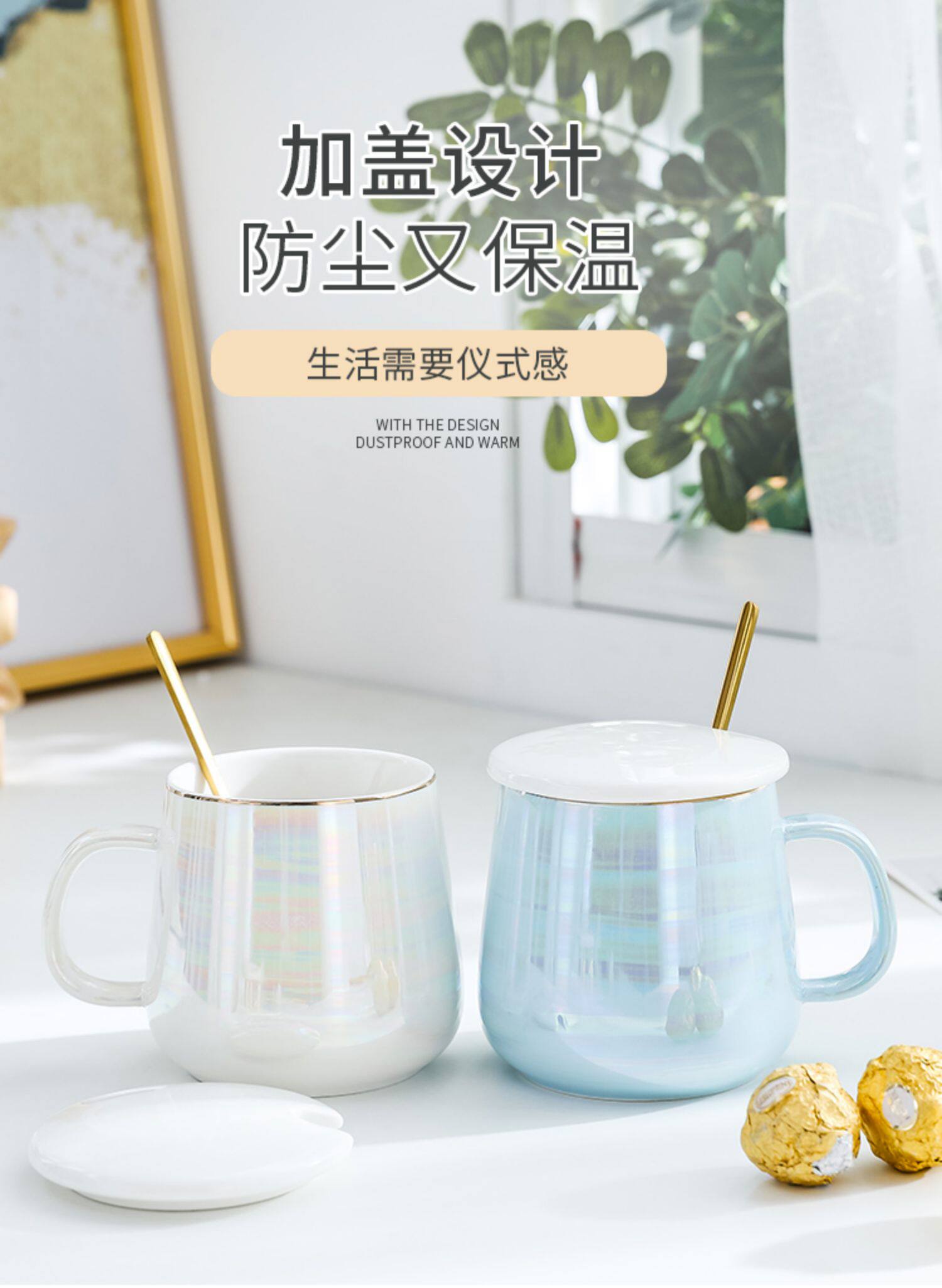 Выпить водяную чашку с высокой стоимостью домашней пары простая чашка Марка с крышкой ложкой творческая тенденция мужчин и женщин керамические кофейные чашки