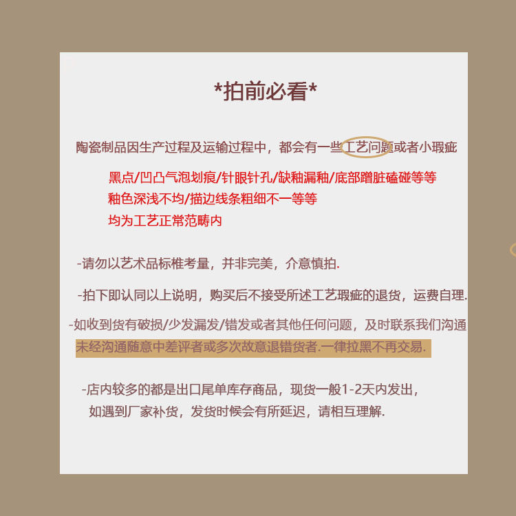 Керамические продукты будут иметь черные пятна/удары/игольчатые погрешения глаз/царапины/глазурь.