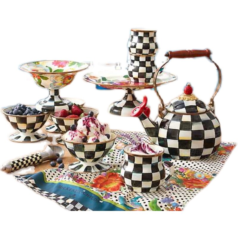 Подлинная покупка Mackenzie-Milds, расписанный вручную европейский дворец, черно-белая клетчатая эмалевая отметка