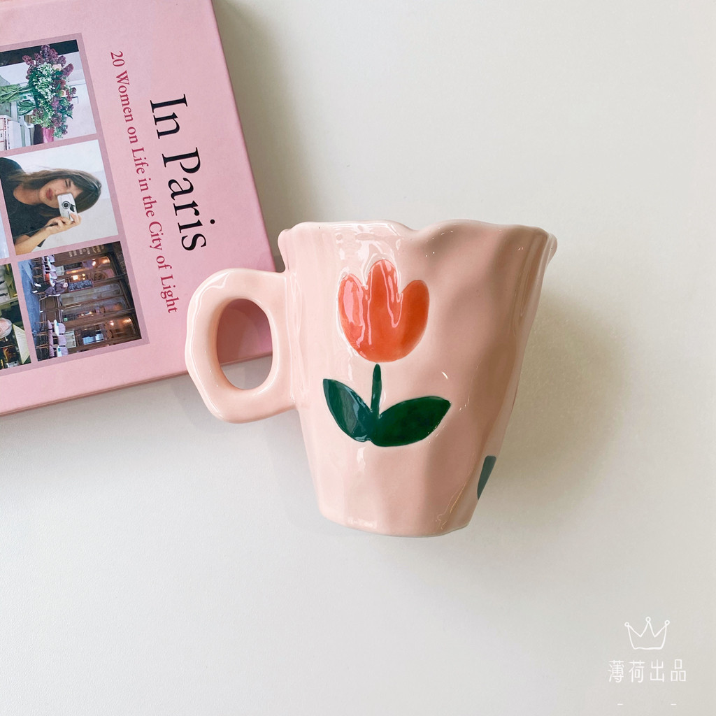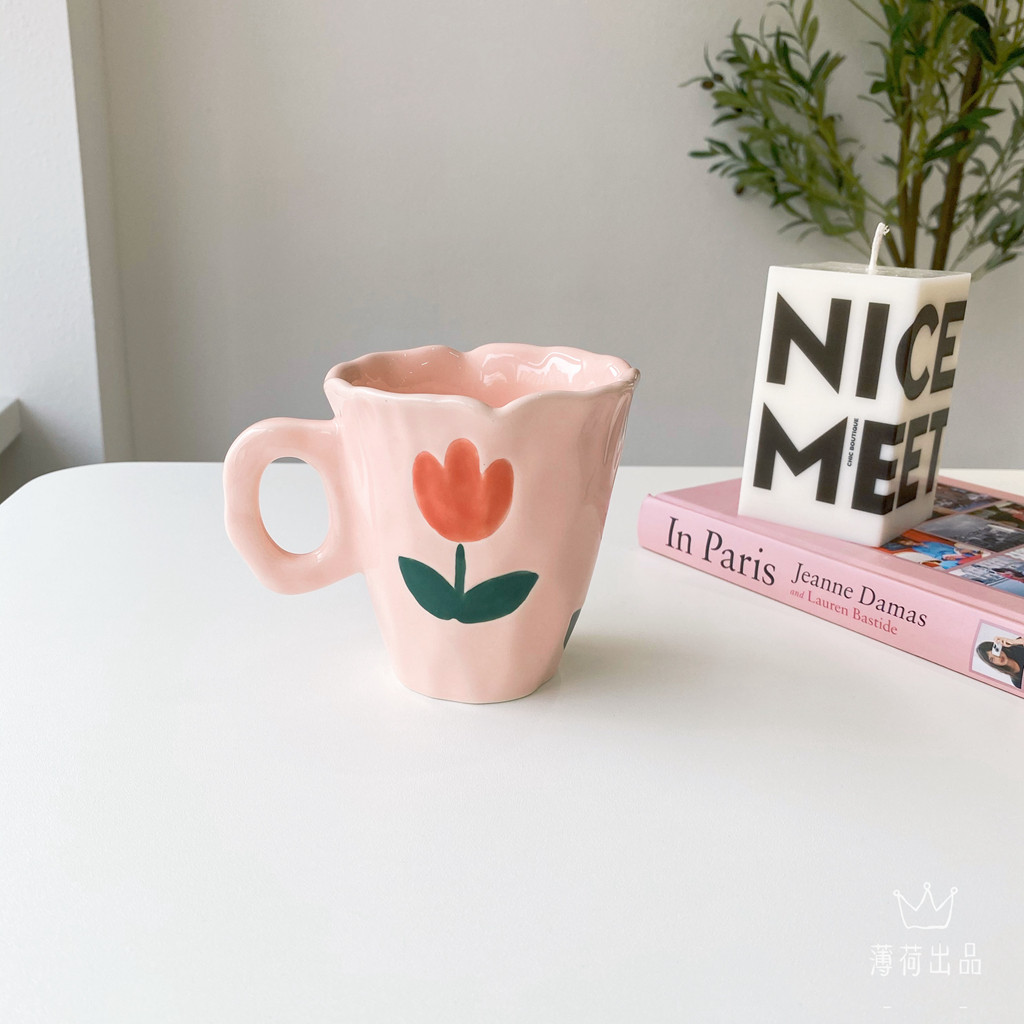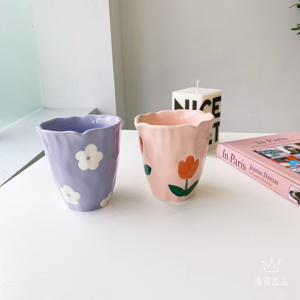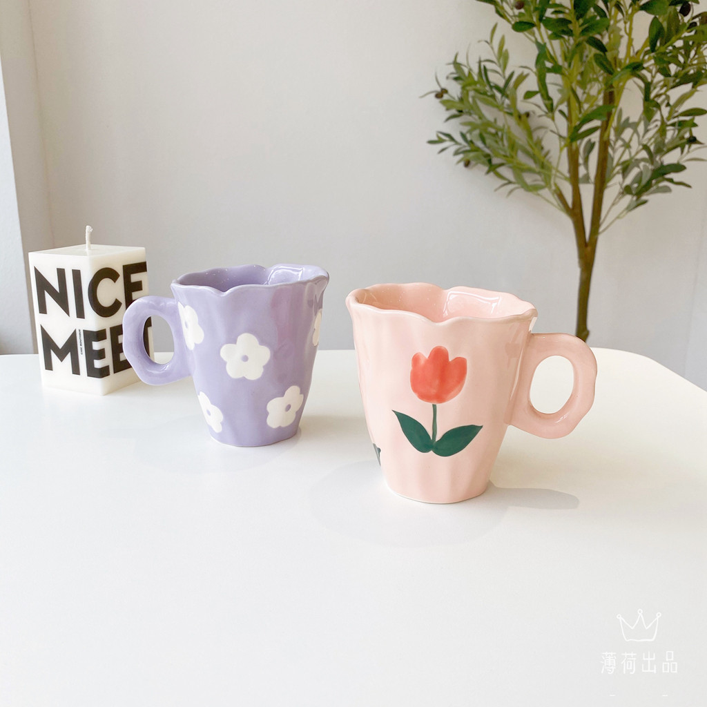 Ins ind hand -drawn cup ниша с ручной рукой с пурпурной цветочной кружкой чашка для керамики кубка