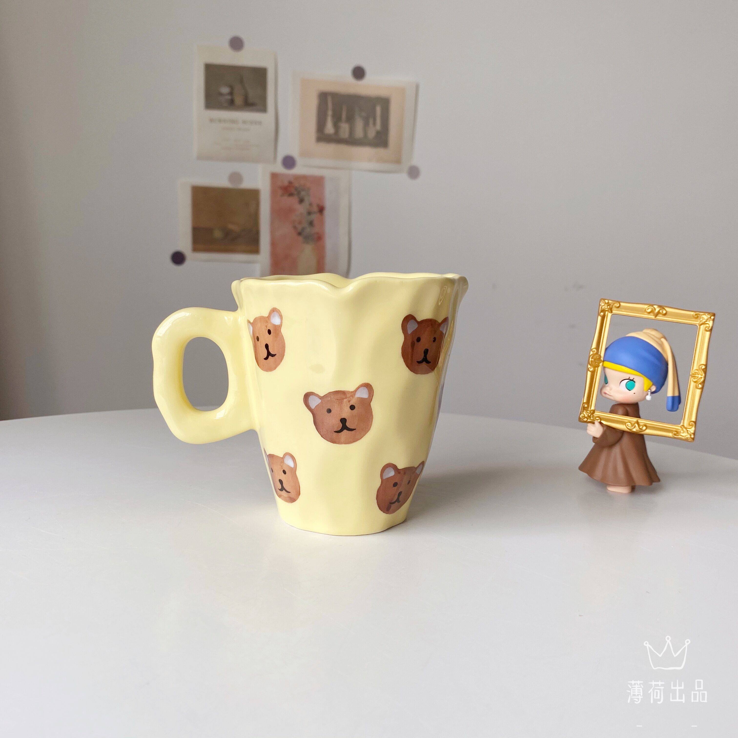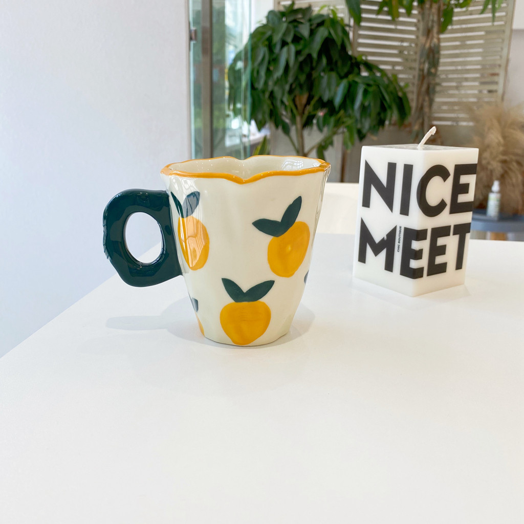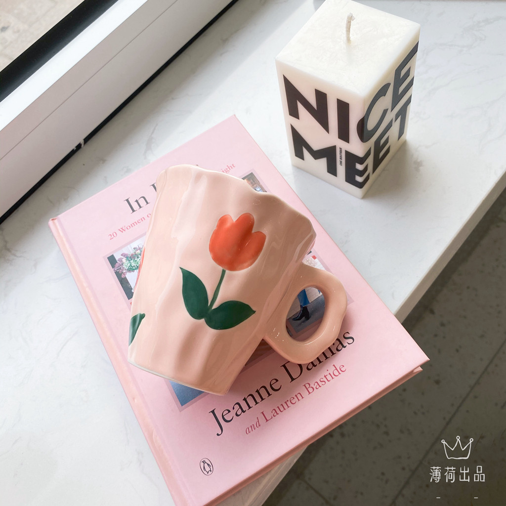 Ins ind hand -drawn cup ниша с ручной рукой с пурпурной цветочной кружкой чашка для керамики кубка