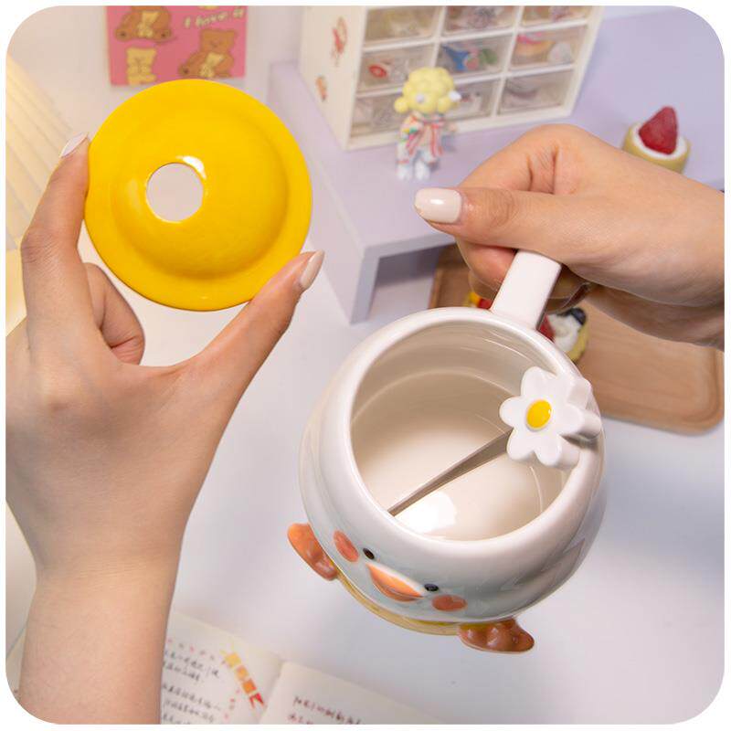 Водяная чашка дизайн ниша кружка с крышкой ложкой милая высококачественная керамическая женщина летняя утиная чашка кубка чашки подарок