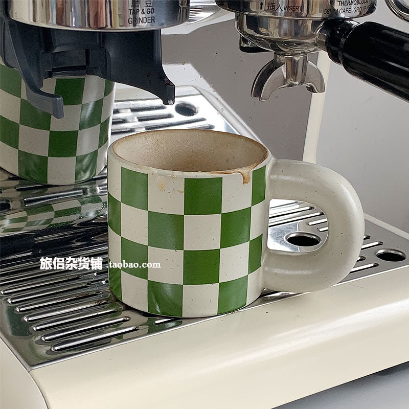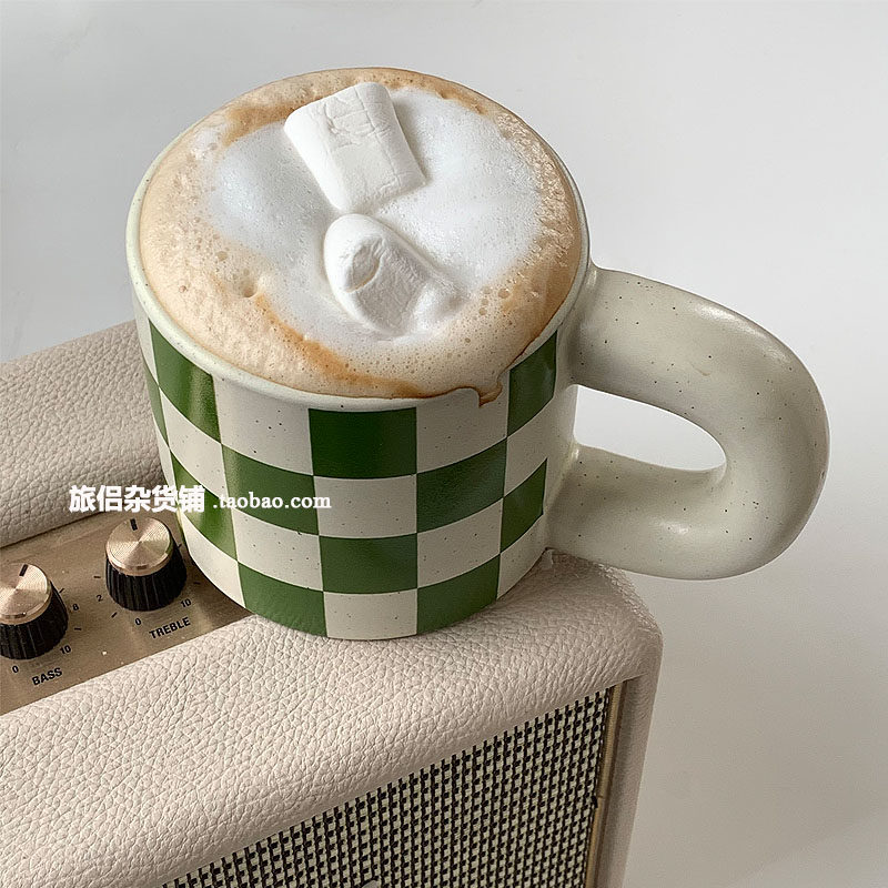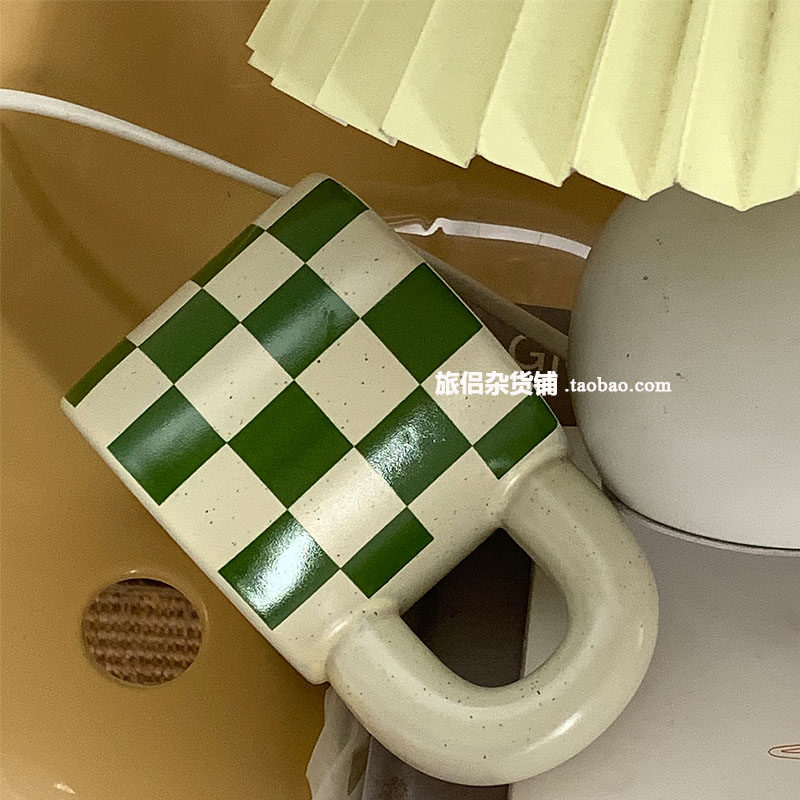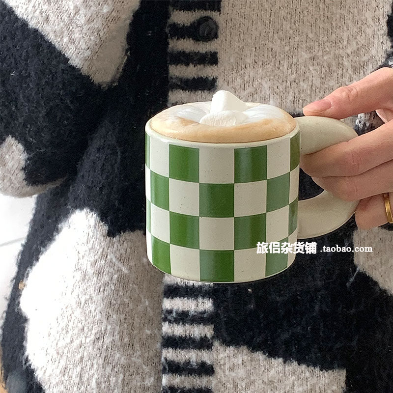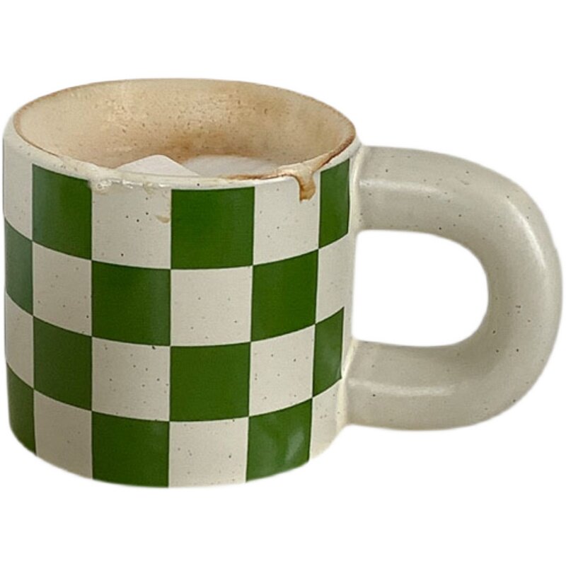 Корейский инвет -ретро зеленый чеклассник Керамическая кружка чашка жирной чашки конопля кофейная чашка латте пара вода вода