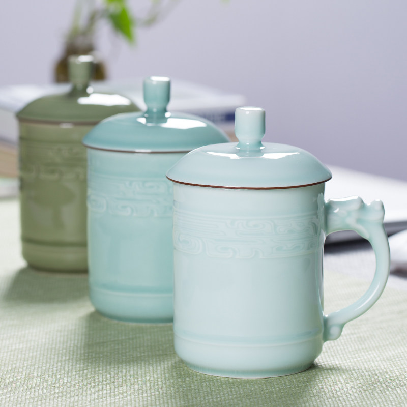Керамическая чашка цвета селадона Longquan с крышкой, личная высококачественная большая офисная чашка, чашка для конференций с ручкой дракона в старинной печи Yue