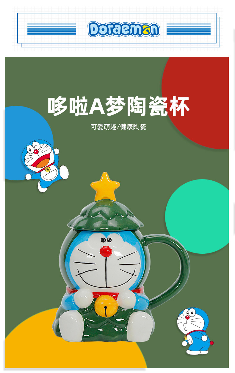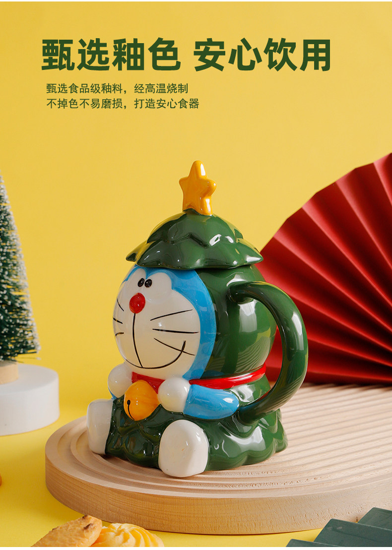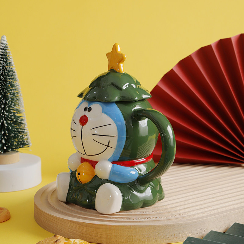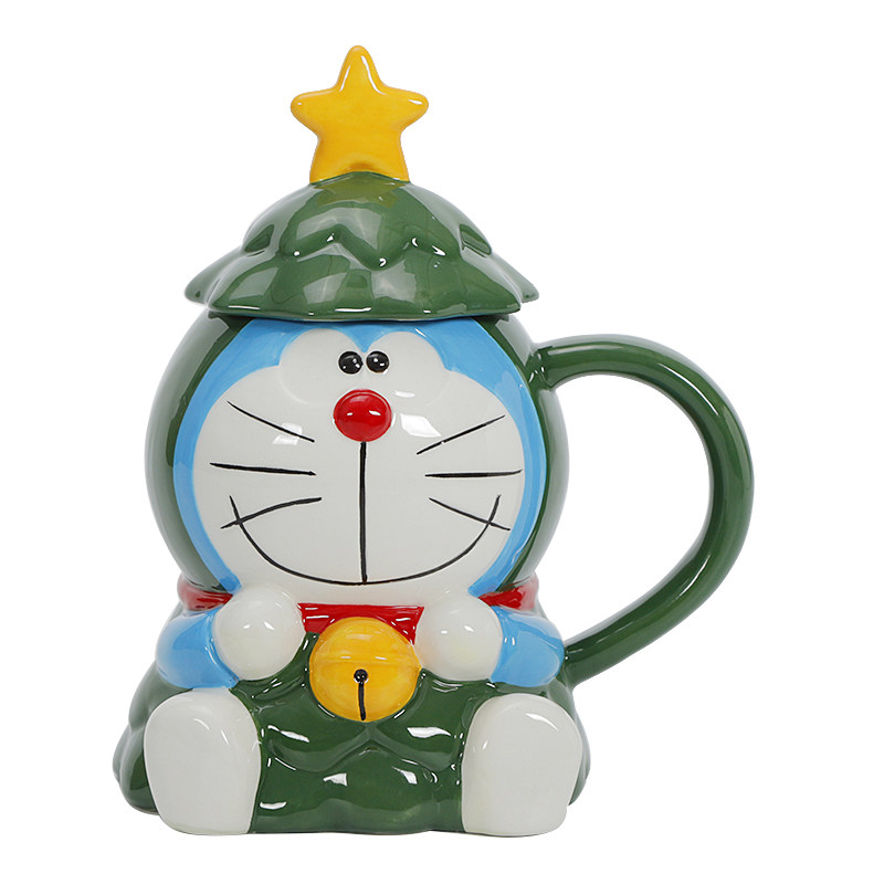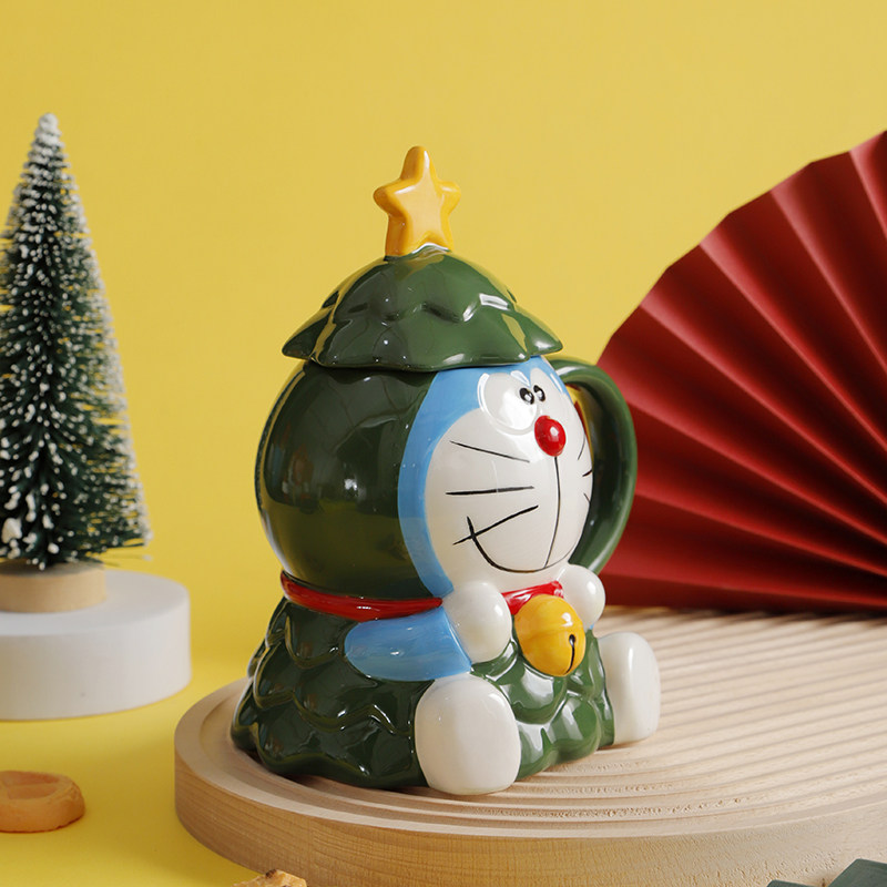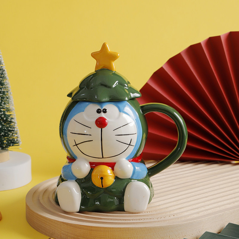 Красивая рождественская кружка Doraemon с крышкой, большая вместимость, милый керамический праздничный подарок для студентов мужского и женского пола, вода