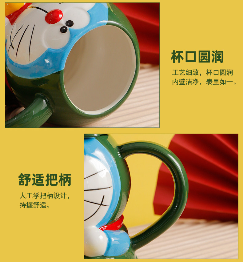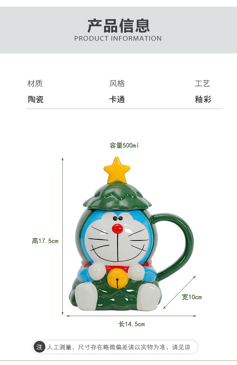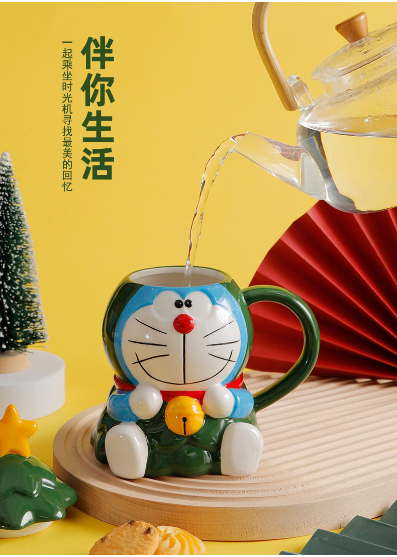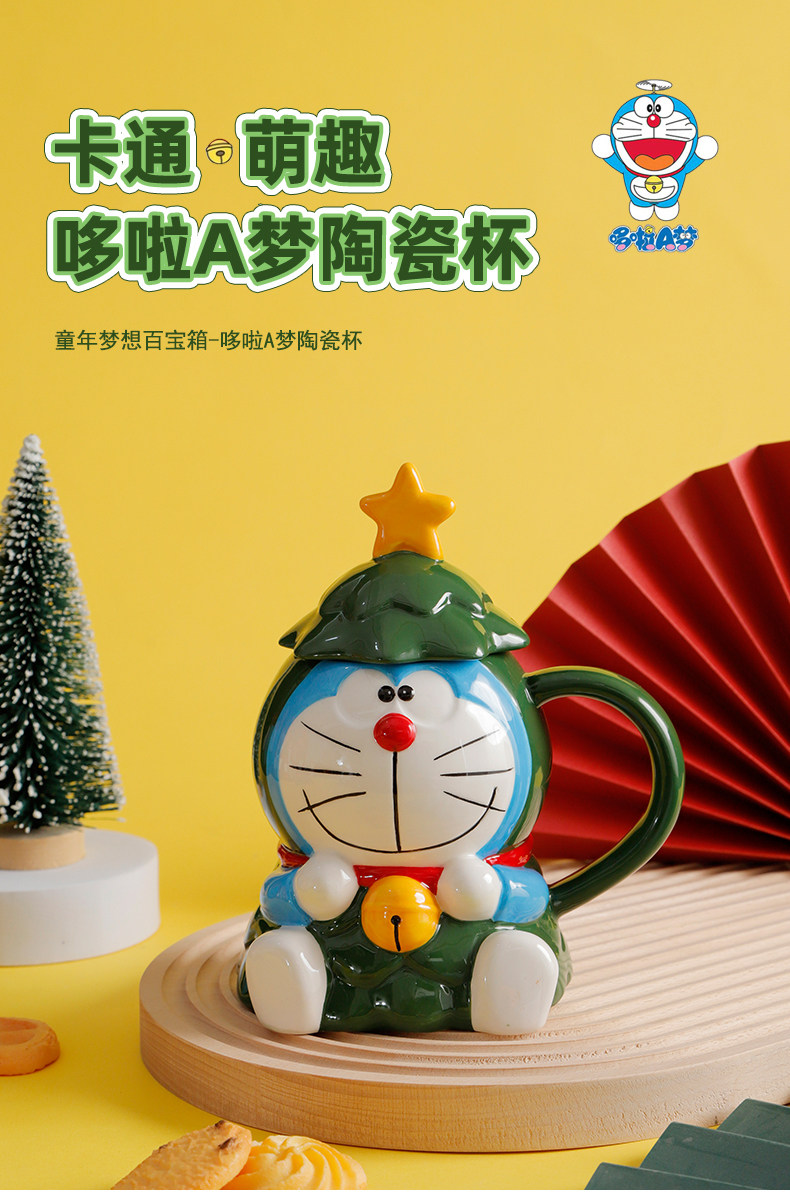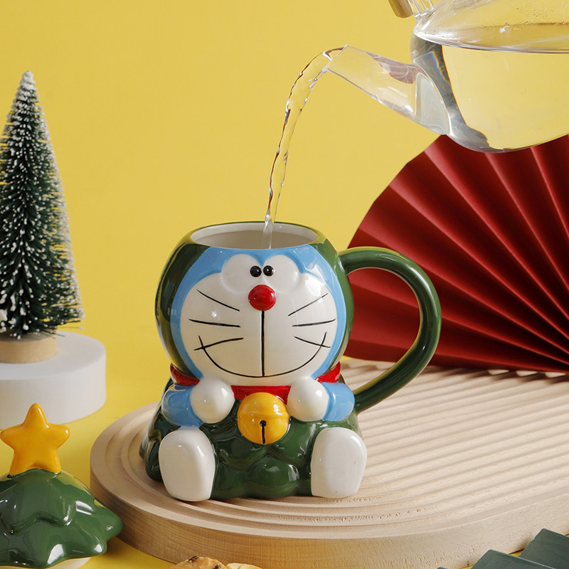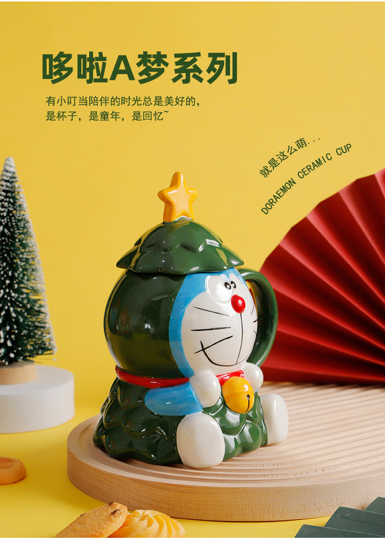 Красивая рождественская кружка Doraemon с крышкой, большая вместимость, милый керамический праздничный подарок для студентов мужского и женского пола, вода