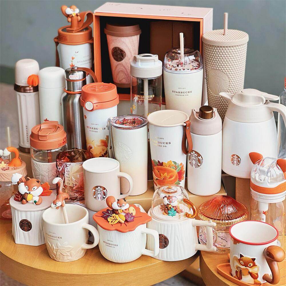 Starbucks, стеклянный керамический кленовый лист, термос, трубочка со стаканом