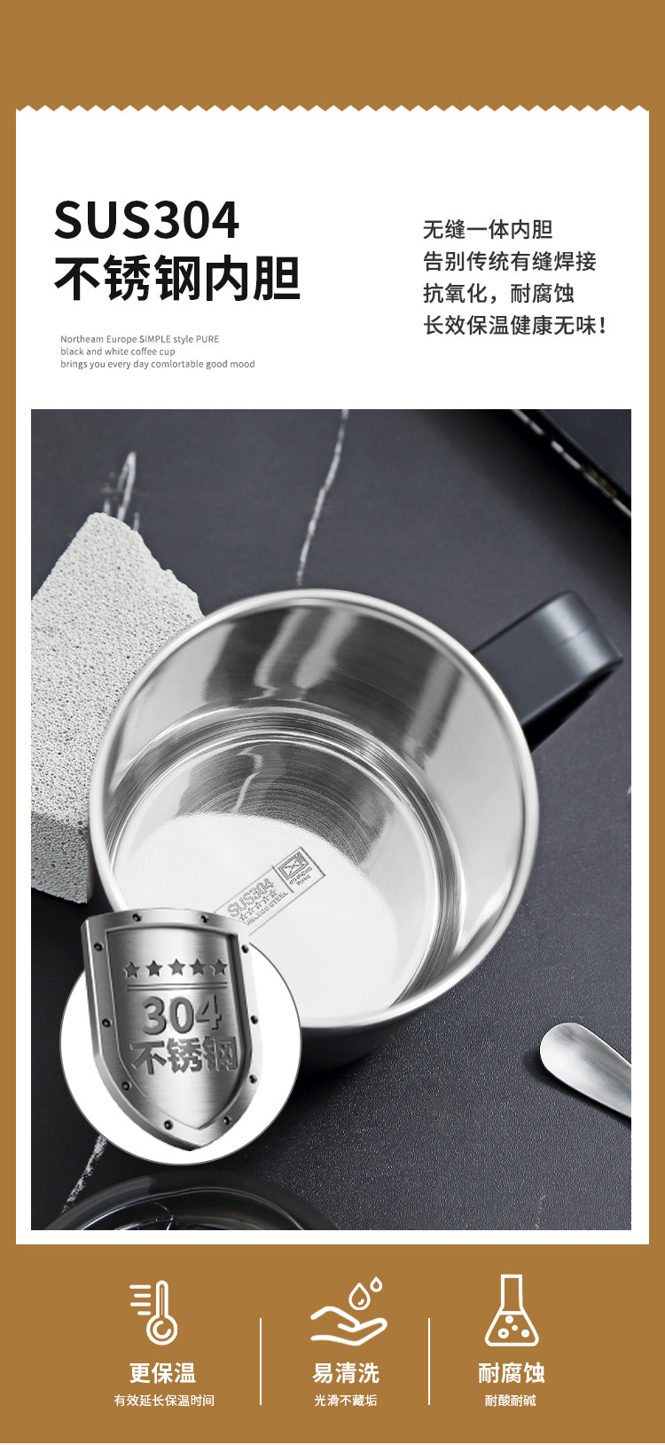 Ложка из нержавеющей стали, высококачественная чайная чашка, кофейный термос