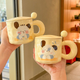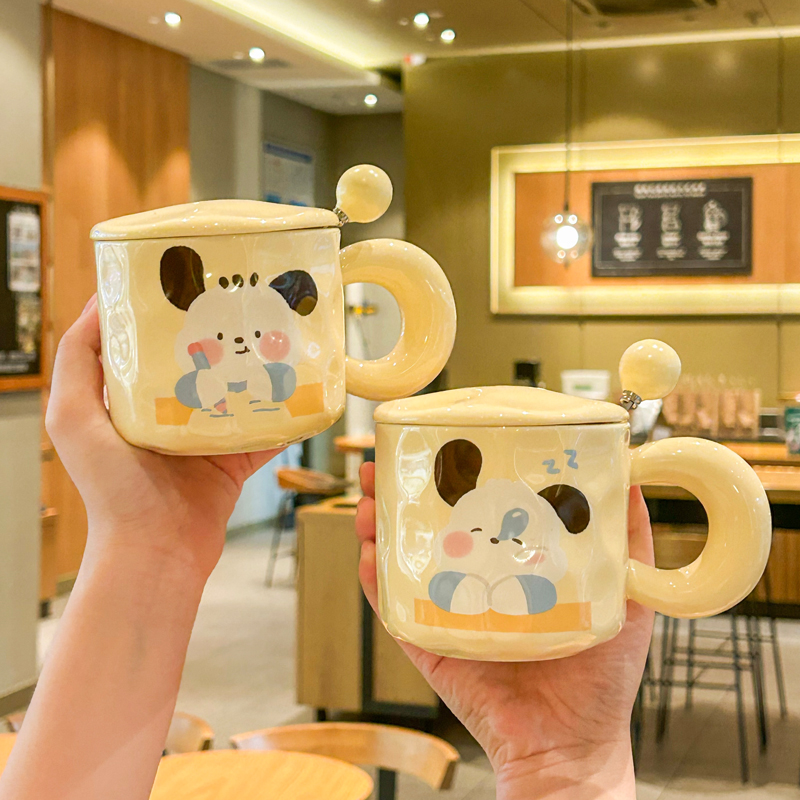 Молоко Fufu Girls Mark Cup Симпатичная студенческая керамическая чашка принесите ложку крупной пары кофейного чашки для кофейного чашки