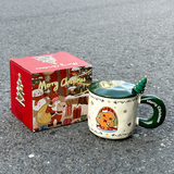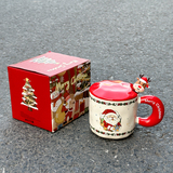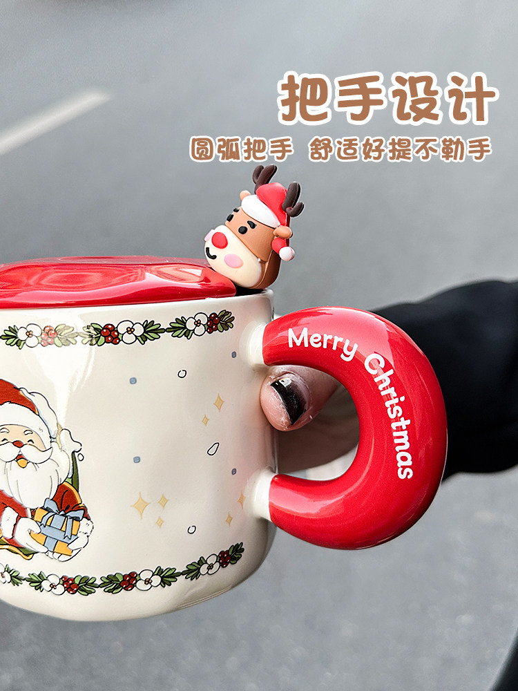 Рождественские подарки Керамическая чашка с крышкой ложки Пара Кубка высокой милой водяной чашки для девочек домашняя кружка