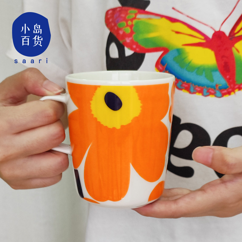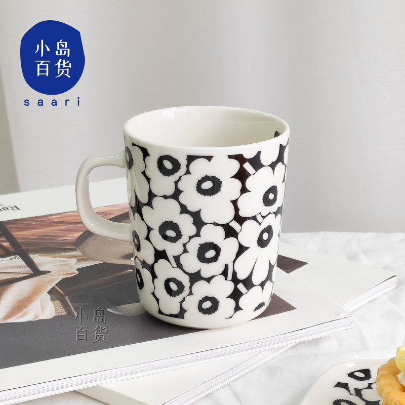 Финская маримекко Кубка Unikko60th Anniversary Green Mark Cup Cup Coffee Черно -белая ручка мемориал