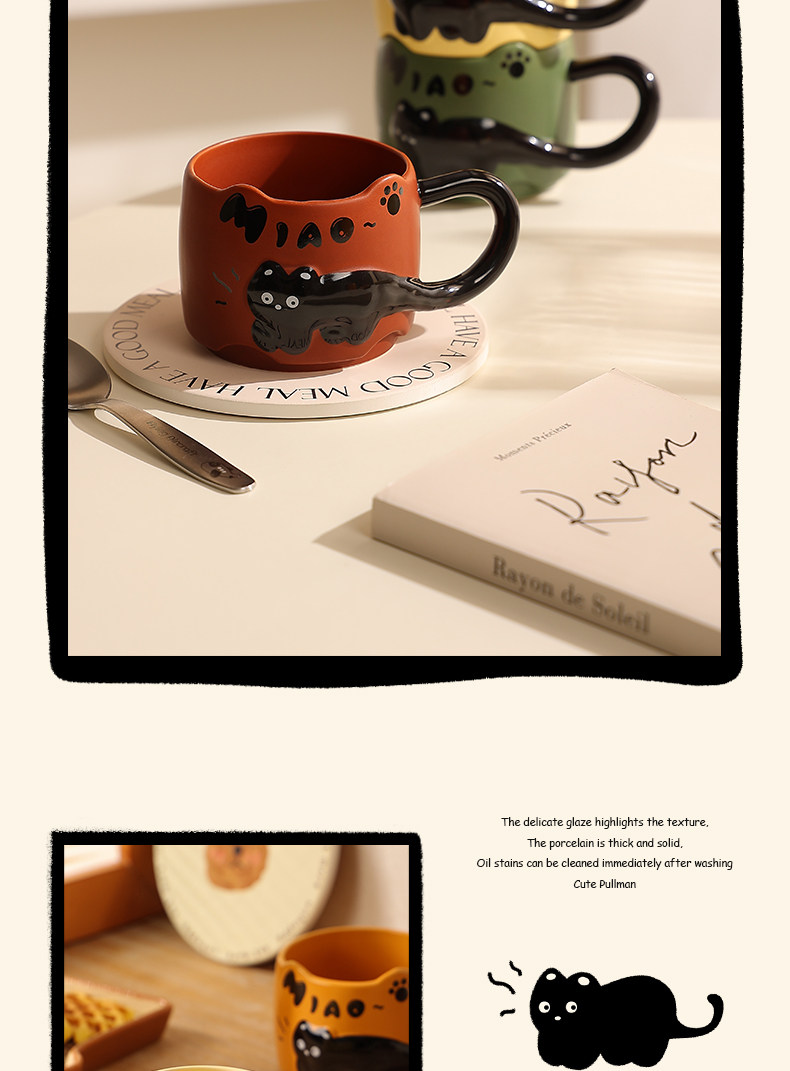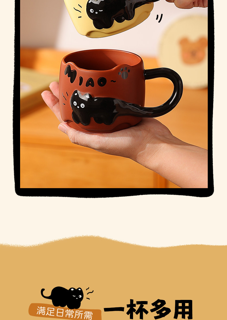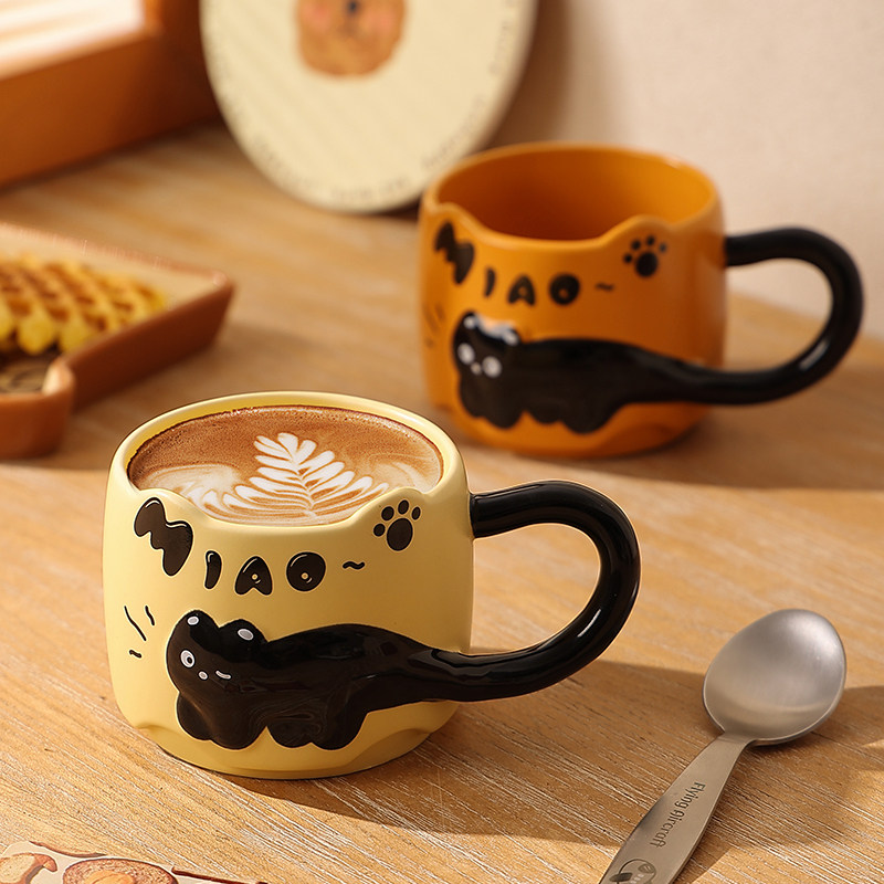 Облегчение котенок Кубка девушек с высокой кружкой милая креативная пара водная чашка керамическая кофейная чашка офиса