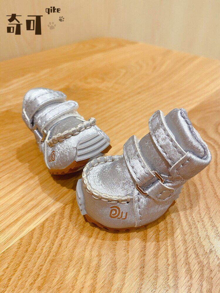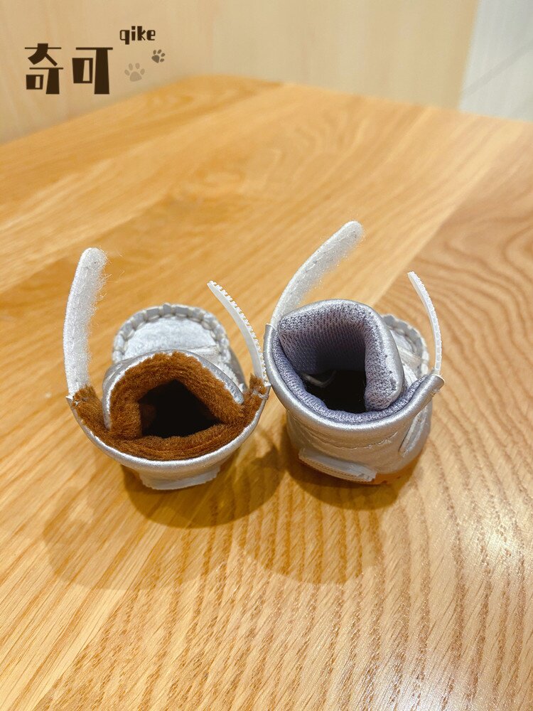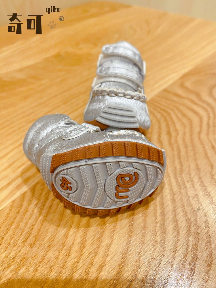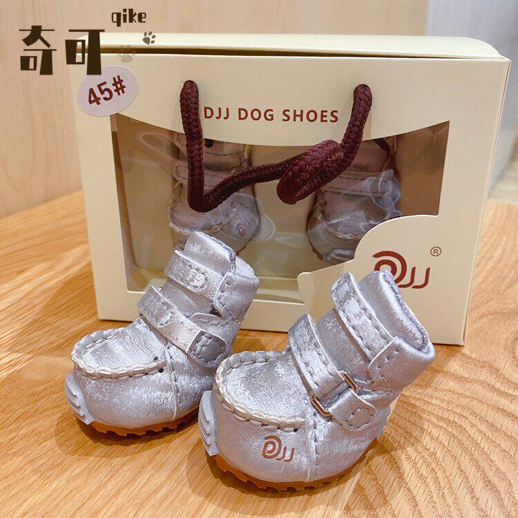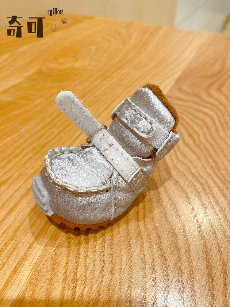 Qikejia DJJ шелк серебряный серебро осень и зима плюс бархатные домашние снежные ботинки для собак обувь плюшевые собаки