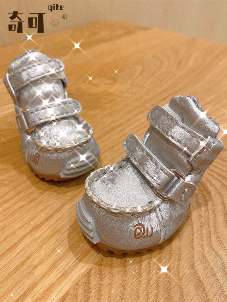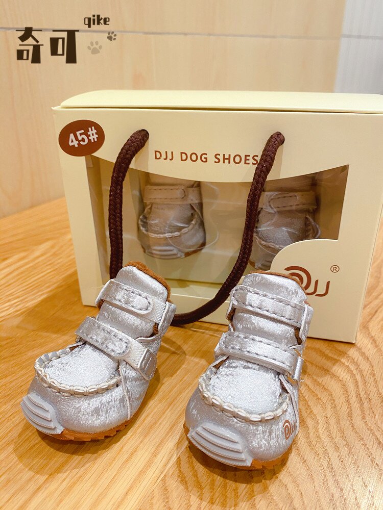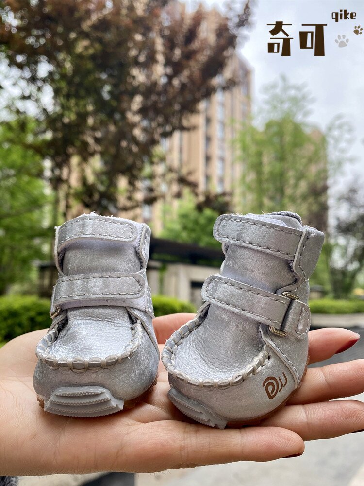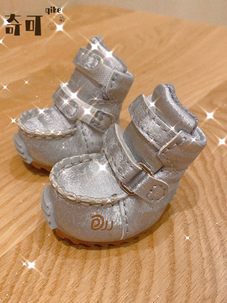 Qikejia DJJ шелк серебряный серебро осень и зима плюс бархатные домашние снежные ботинки для собак обувь плюшевые собаки