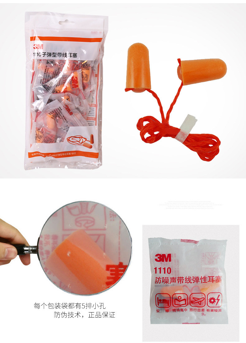 3M Линейные затычки для ушей 1110 анти -нитизированное пенопластовое снижение шумоподавления Учебное сон, храп и спящая промышленная фабрика звукоизоляция