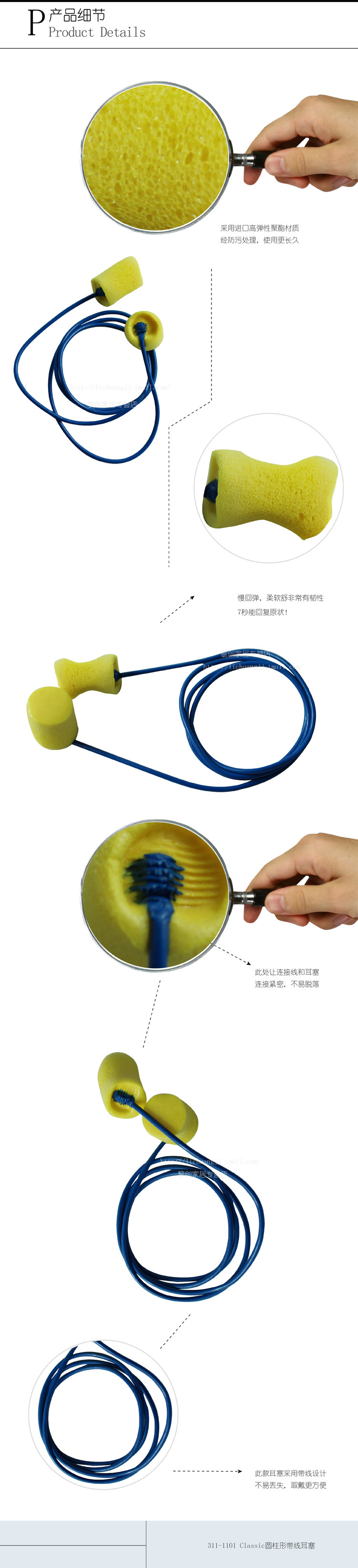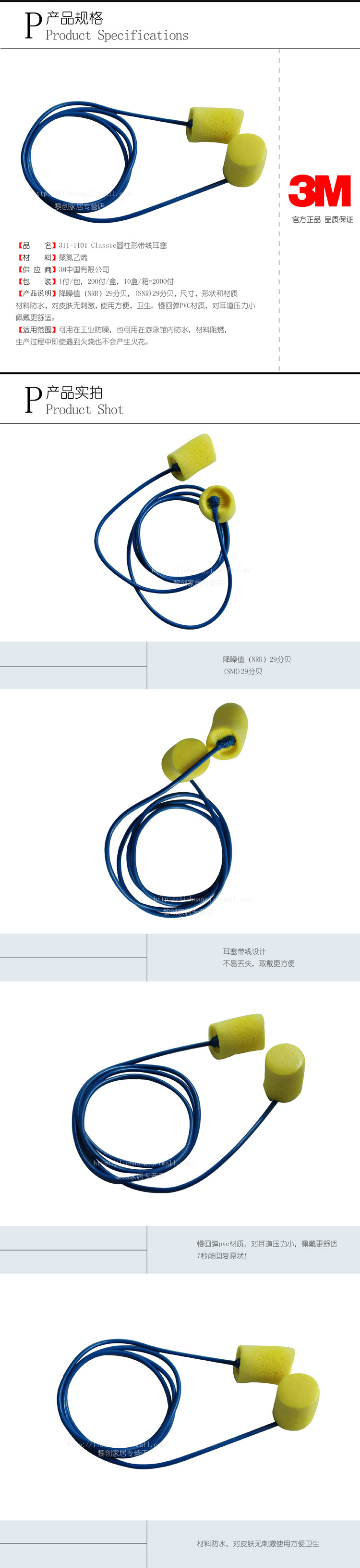 3M Затычки для ушей 311-11101 Классический цилиндрический ремешок звукоизоляционная изоляция шума и профилактика шума