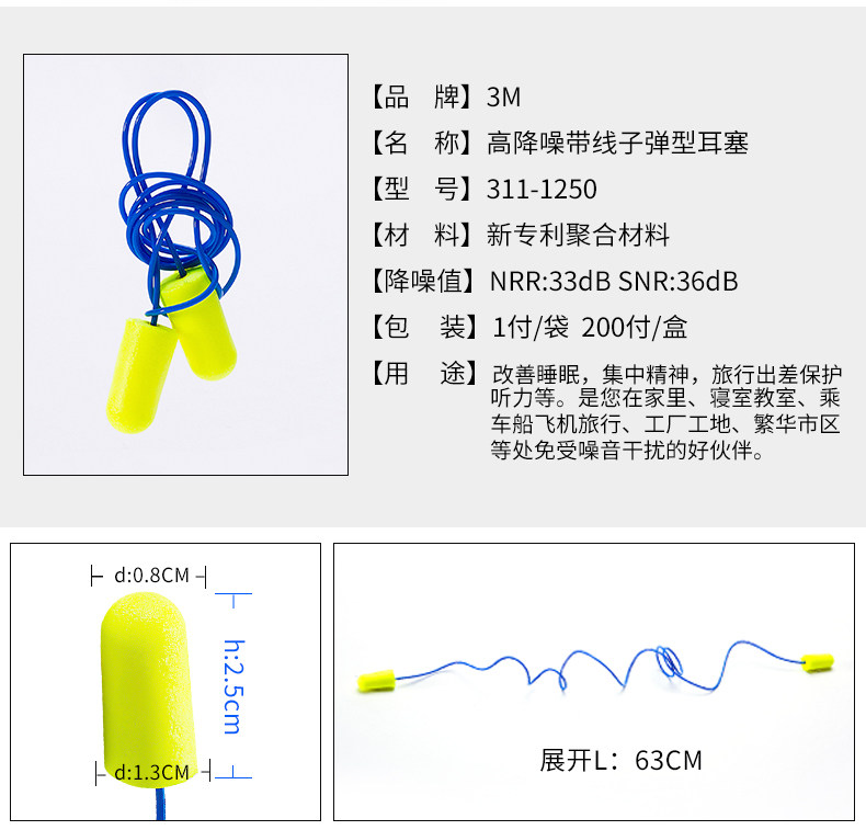 3M Затычки для ушей 311-1250 анти-шумный сон сон антисноар