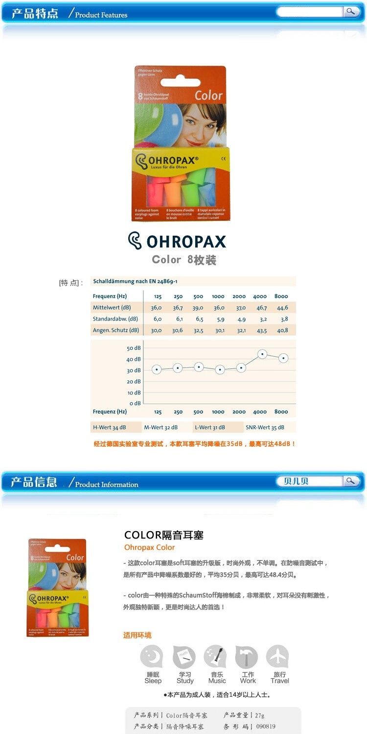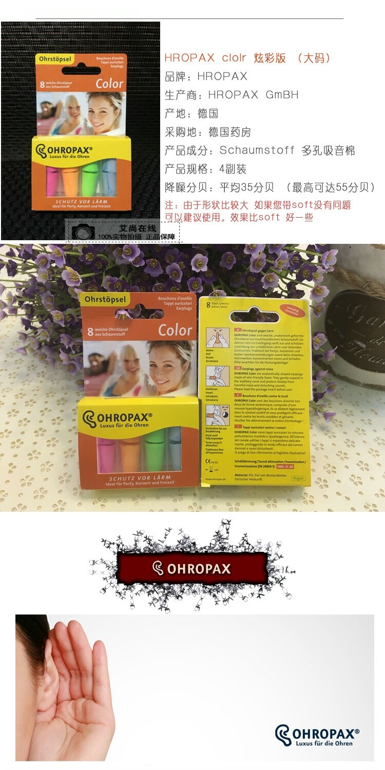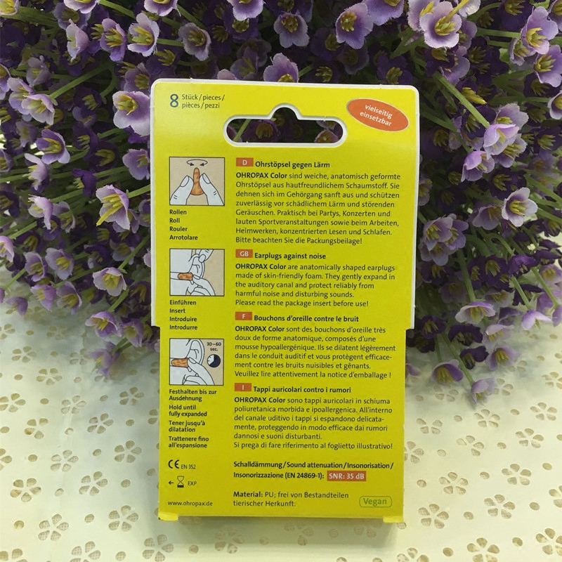 Германия Ohropax Color Sound Изоляция Super Sleem Sleep Shoom Prevention Learning Мужчины и женщины храят затычки для ушей