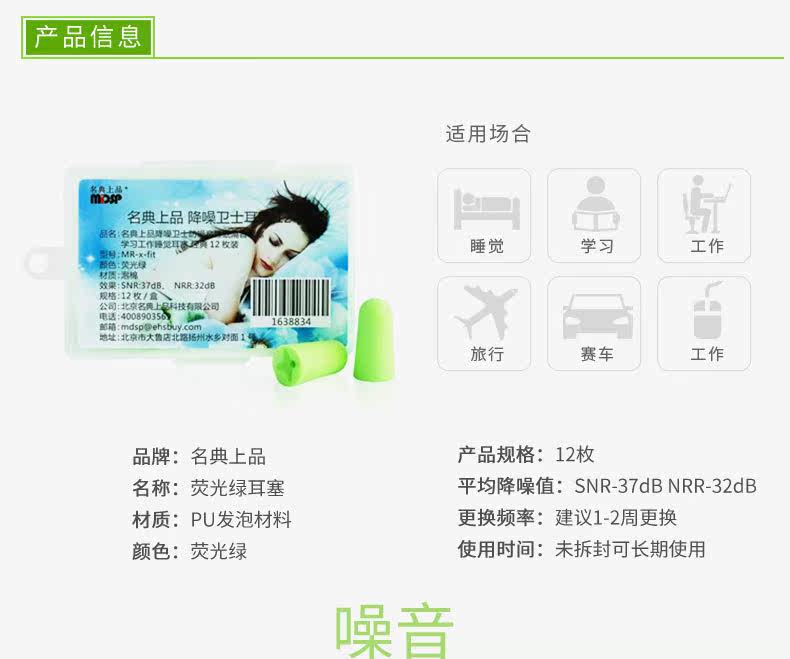 名典上品 Обучающие зеленые беруши для сна подходит для мужчин и женщин