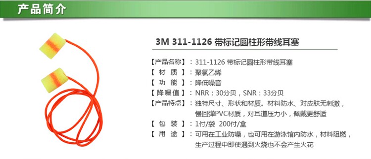 3M 311-1126 Звукоизоляционная изоляция ухбобобоболболовая цилиндрическая полоса, защищенная от шумоподобной изоляции, обучение пеной, затычки для ушей