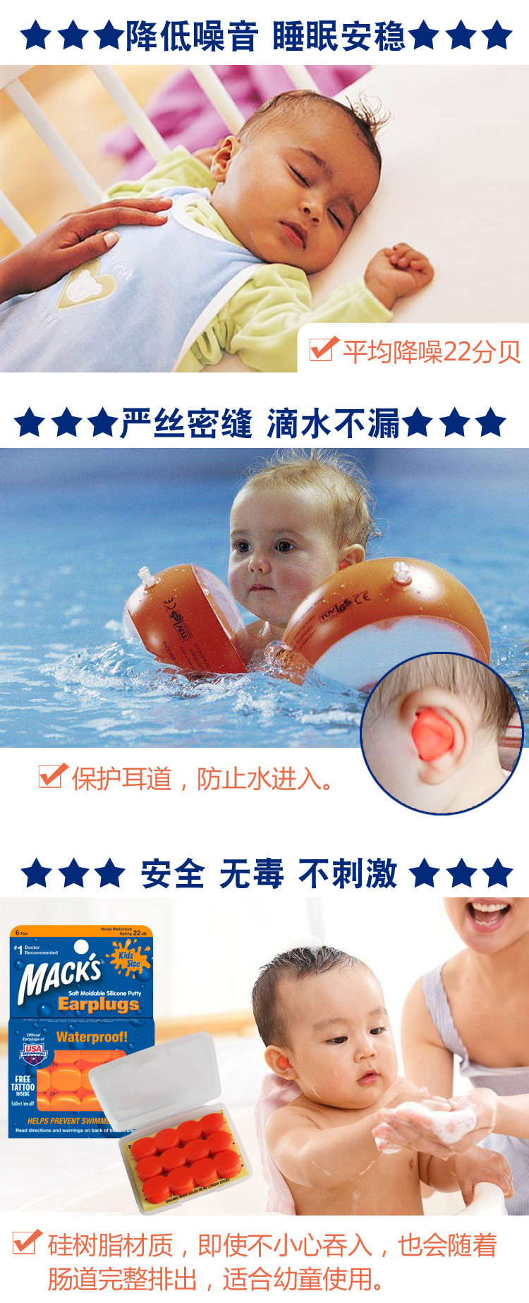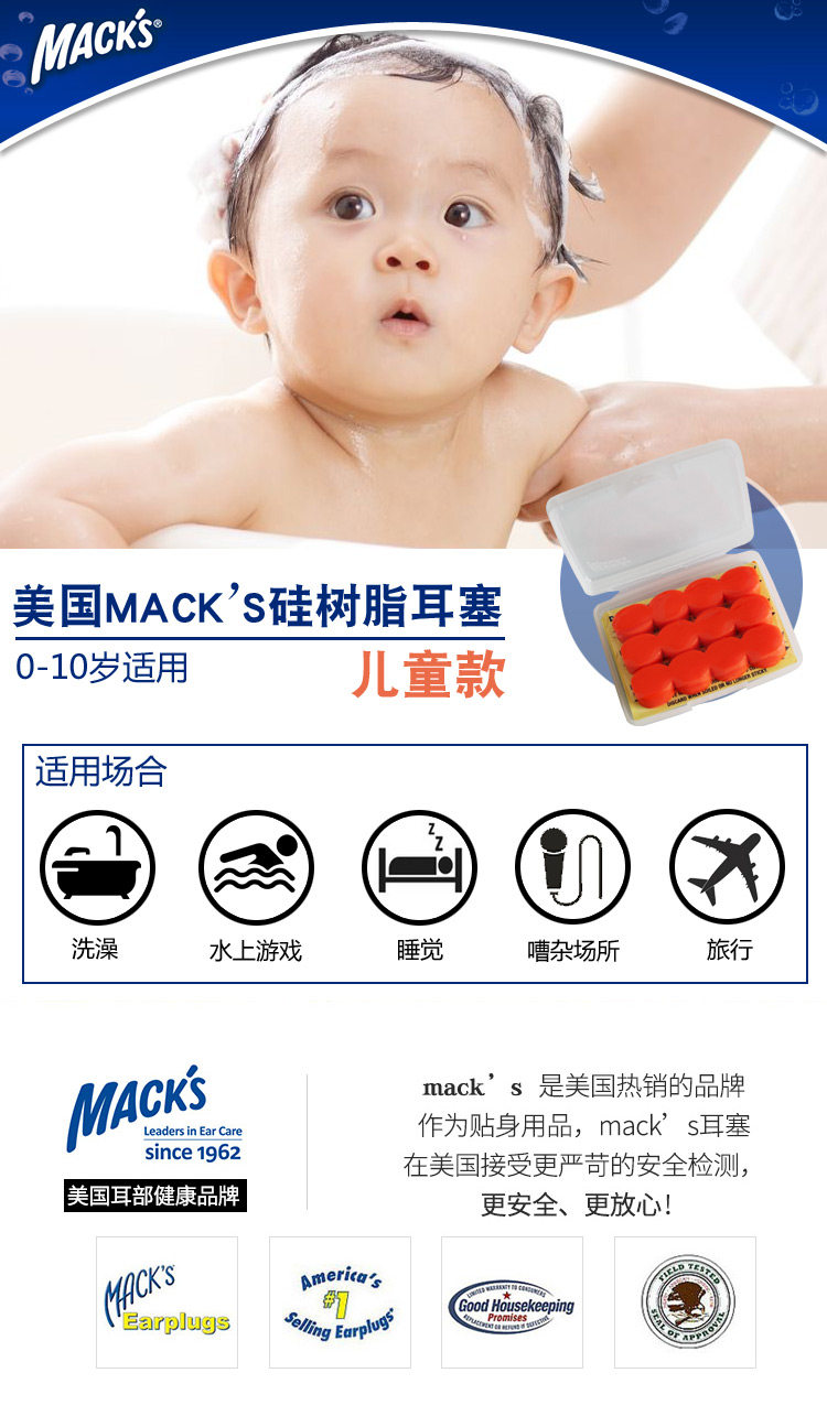 Американский мак малыш детские детские детские затычки для ушей, плавание, купание, водонепроницаемый сон, шум, шум, анти -нитизированные фейерверки
