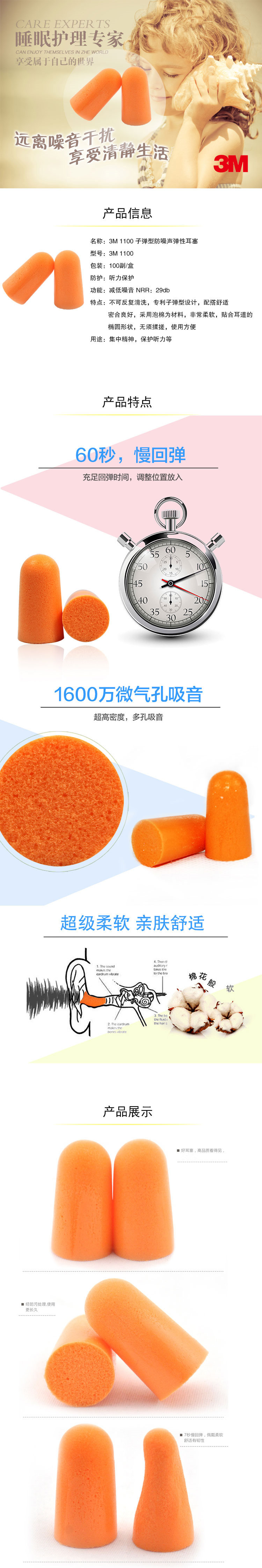 3M1100 -затычка для ушей -Проницаемый шумовой анти -нивый сон, дамы, шумоподавление, спящая тишина, безмолвные затычки для ушей, безмолвные рабочие