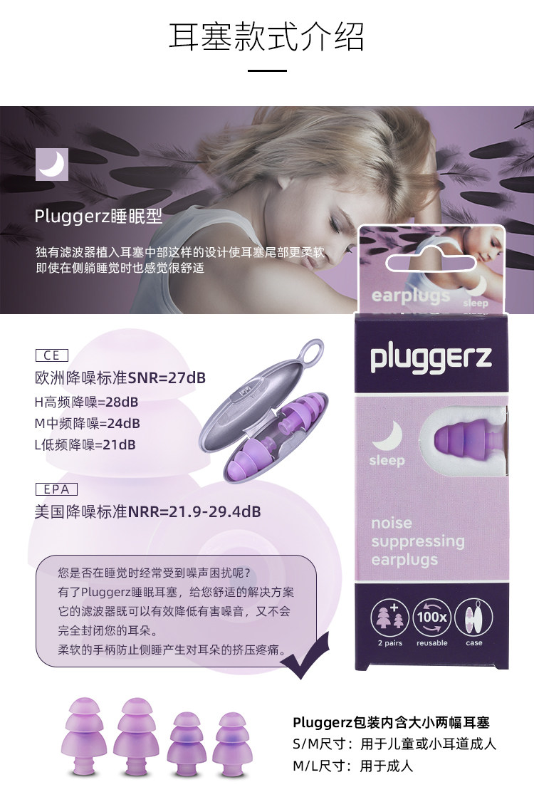 Затычки для ушей Pluggerz One One Sleep Sleeprybout row-снижение Sleep Sleep тихо и удобная маленькая пара