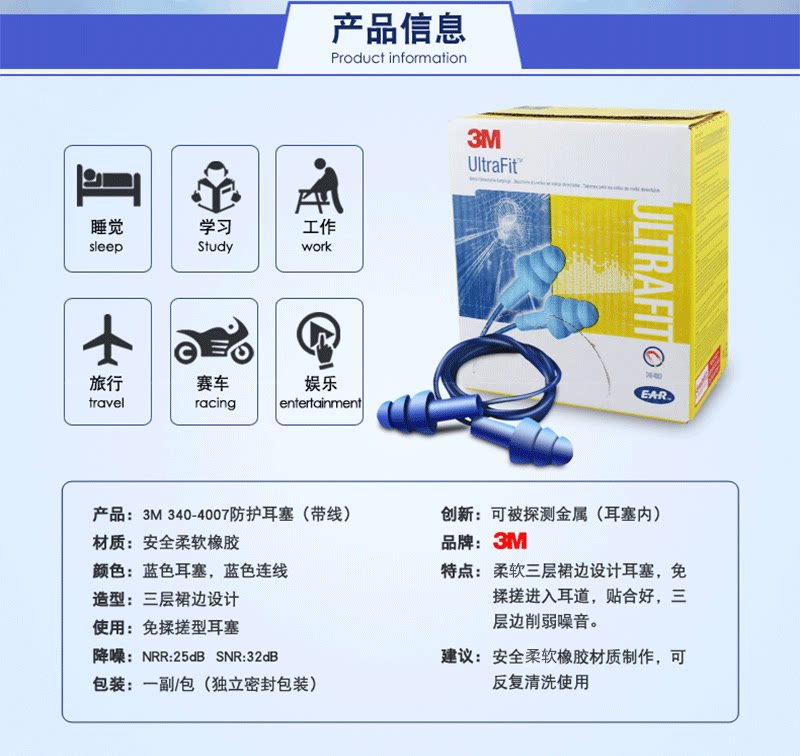 3M Рождественские типы затычек для ушей 340-4007 могут обнаружить металлический шум, шум, звукоизоированный шум, сон, сон, сон