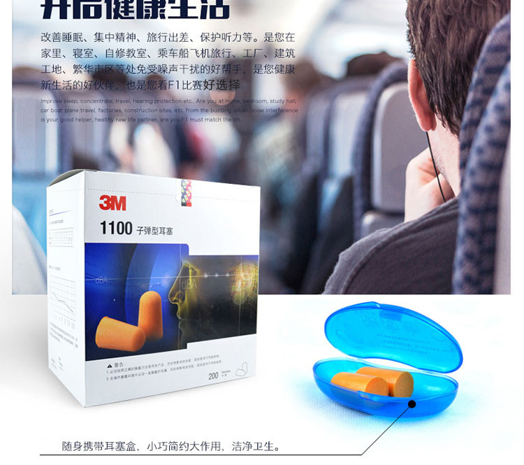 Подлинный 3M1110 Шум -затычка -Проницаемые учебные работы, самолет, оборудование для сна звук.