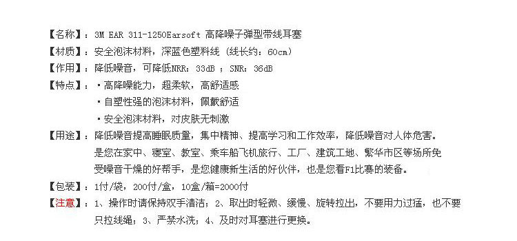3M 311-1250 Звукоизоляционные затычки для ушей с кабелем супер мягкой спальной эластичной звукопролитой ушной заглушкой для ушной заглушки с ушной заглушкой