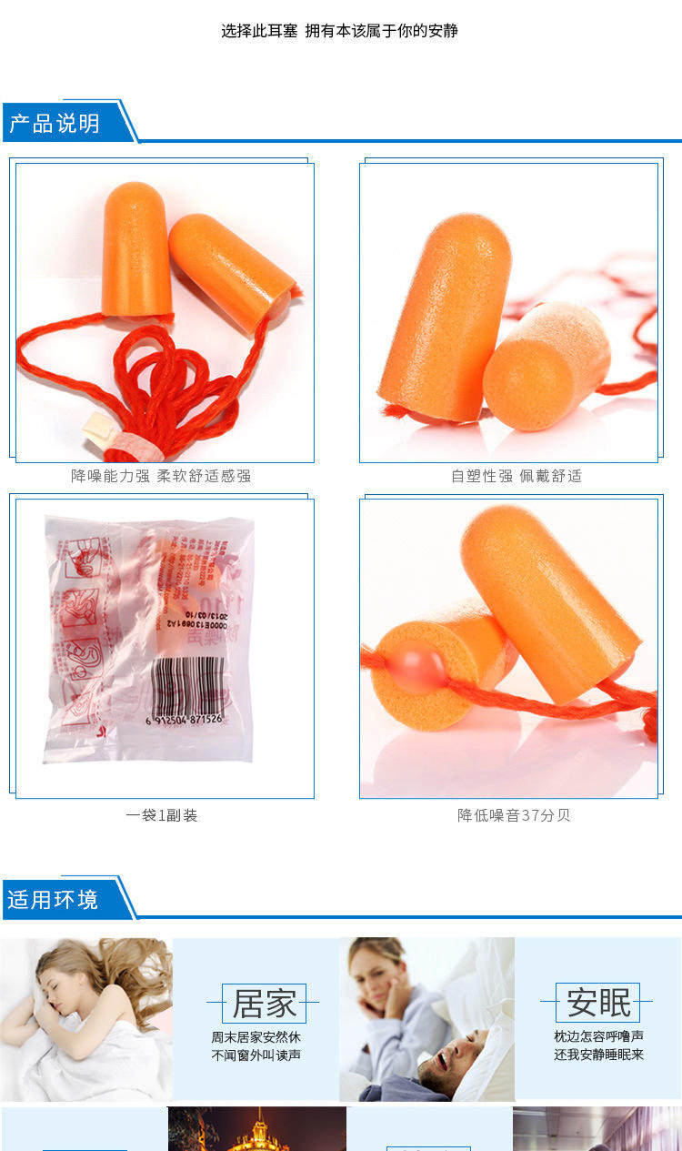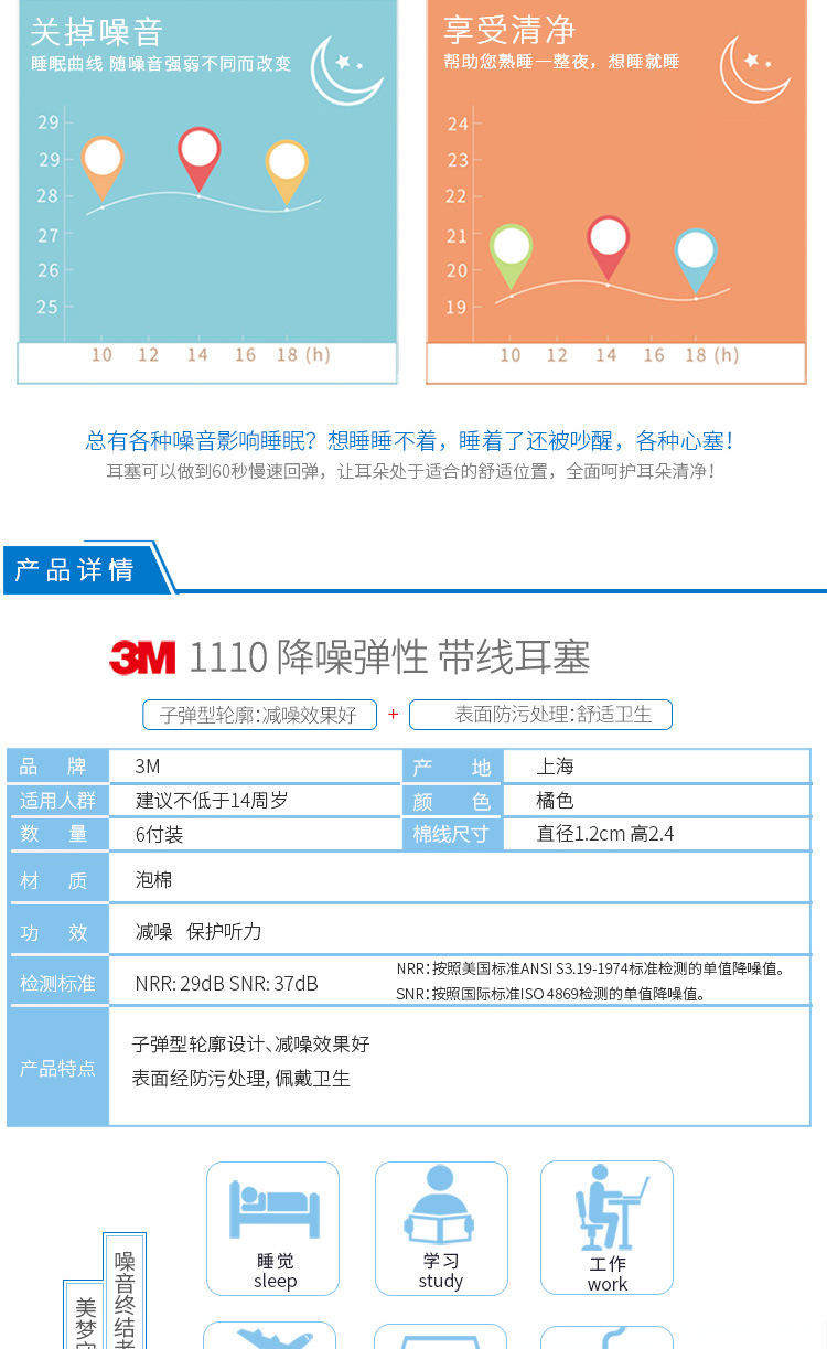 3 -метровые затычки для ушей 1110 Анти -нитизированный сон супер студенческий анти -снорирование